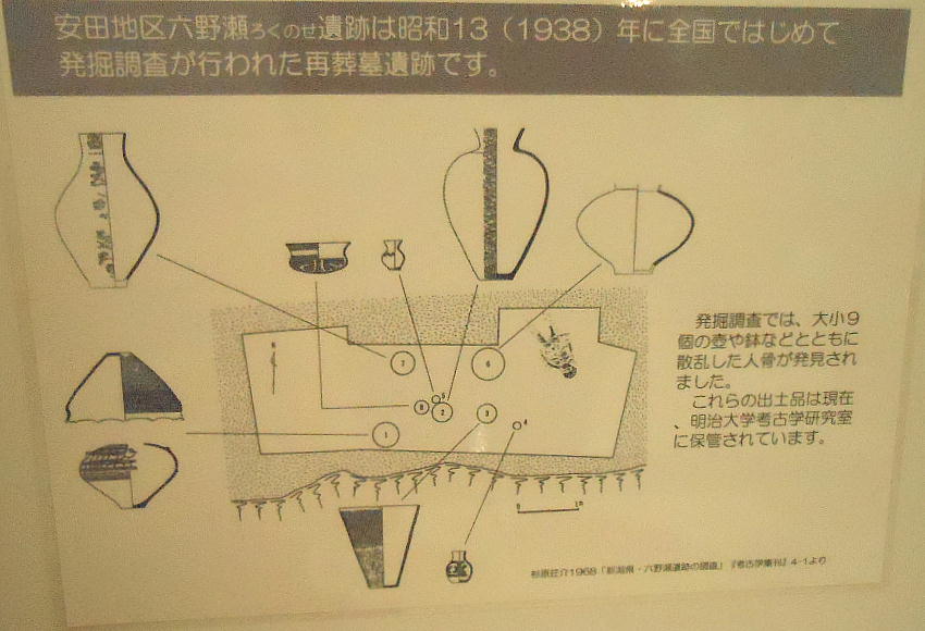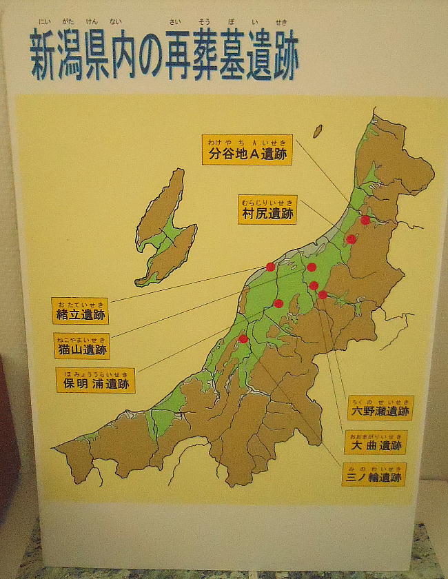 新潟県内の弥生時代前期、中期の再葬墓としては、村尻遺跡、猫山遺跡、六野瀬遺跡、大曲遺跡、三ノ輪遺跡などがある。保明