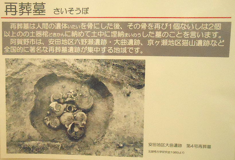 遺体をいったん埋葬して白骨化させたあと、その骨を再び壷形土器などの容器に埋納する葬法である。土器棺を用いた再葬墓は、