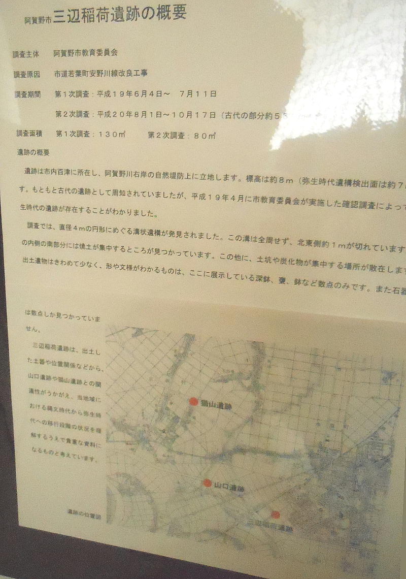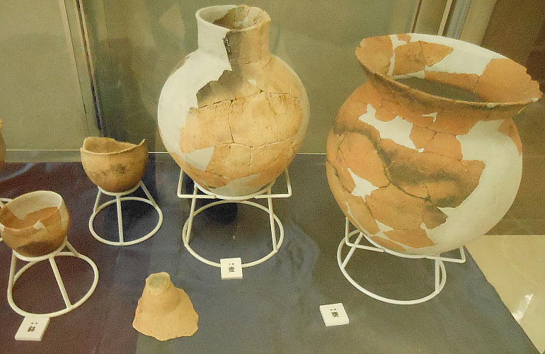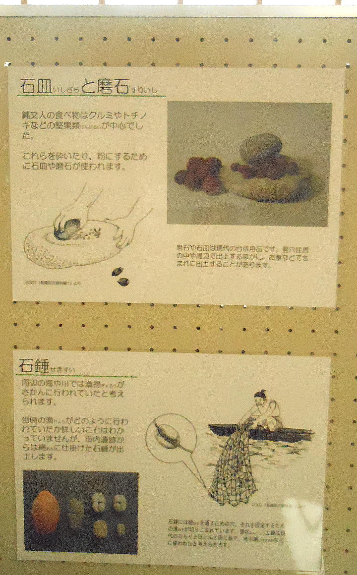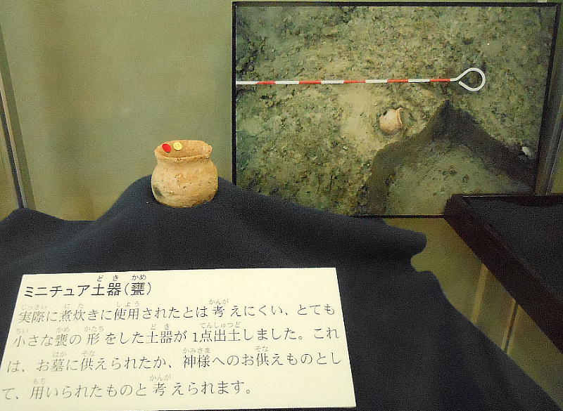 この遺跡からは、翡翠の勾玉、石鏃等も出土しているが、稲作の痕跡は無く、縄文時代の