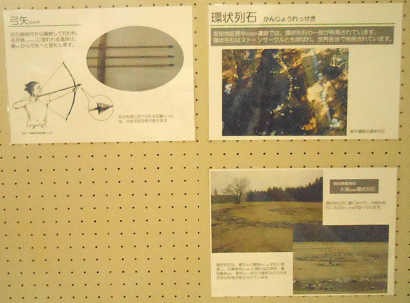 縄文時代の「野中遺跡」や「ツベタ遺跡」(旧安田町)からは、ストーンサークル(環状列石)や、大地震による液状化跡や地割れ