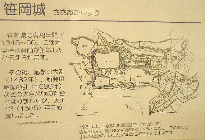 南北朝時代の貞和年間(1350年頃)、南朝に仕えた篠岡中将資尚により笹岡城が築城される。戦国時代にはいるとこの笹岡城は、
