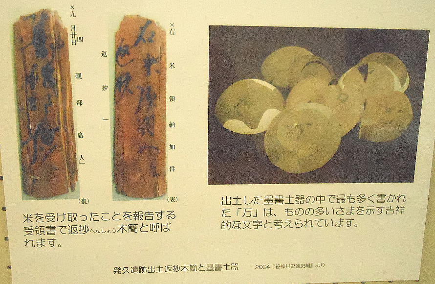 奈良時代から平安時代の旧笹神村の官衙(かんが=官庁)遺跡と推定される発久(ほっきゅう)遺跡からは、延暦14年(795)の