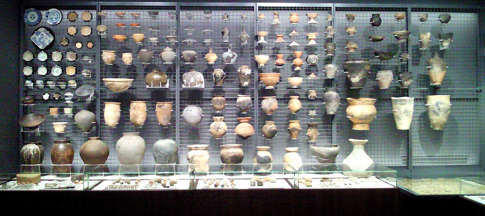 展示室へ入るなり、な、なんだこれはと、壁やケースに整然と並べられた遺物に圧倒される。