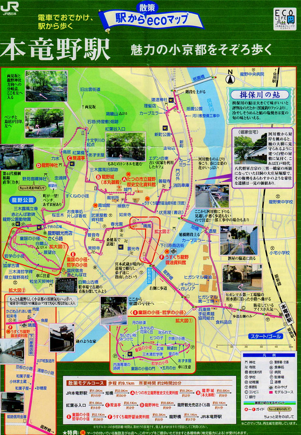 (国木田専八の玉垣 − 紅葉谷 − 野見宿禰神社 − 聚遠亭 − 龍野神社 − 文学の小径