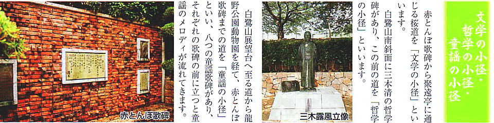 − 平井文之助の句碑 − 犬飼武、篤子の比翼歌碑 − 童謡の小径) −