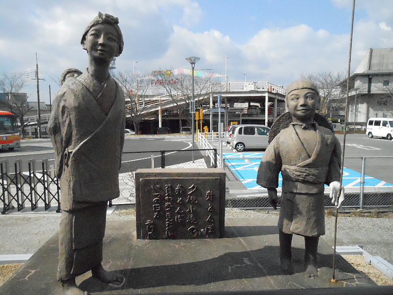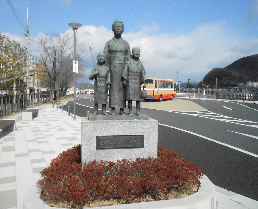 ここにも記念碑が。真ん中のお母さんに尻をつままれているようにも見えます。お母さんは唱ってないからやね。