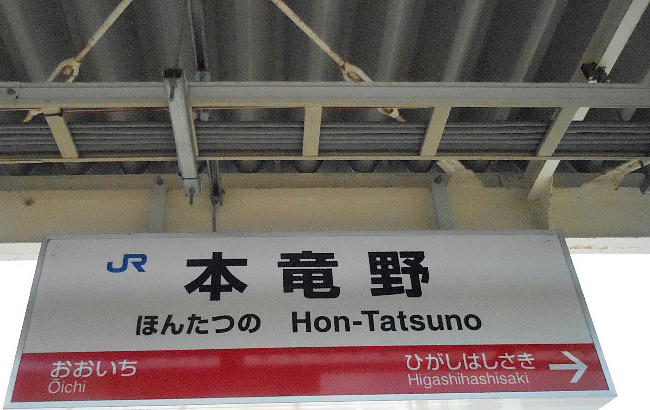 姫路で姫新(きしん)線に乗り換えて「本竜野駅」まで20分程、4駅。1両だけの単線。姫新線は、兵庫県姫路市の姫路