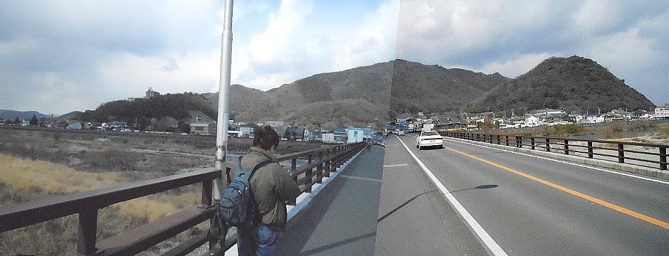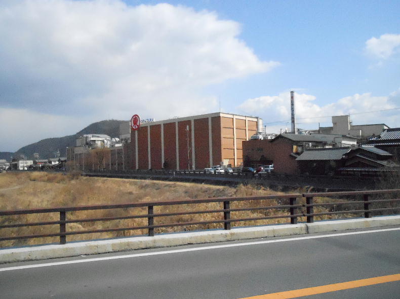 ヒガシマル醤油の工場群を見ながら揖保川をわたります。