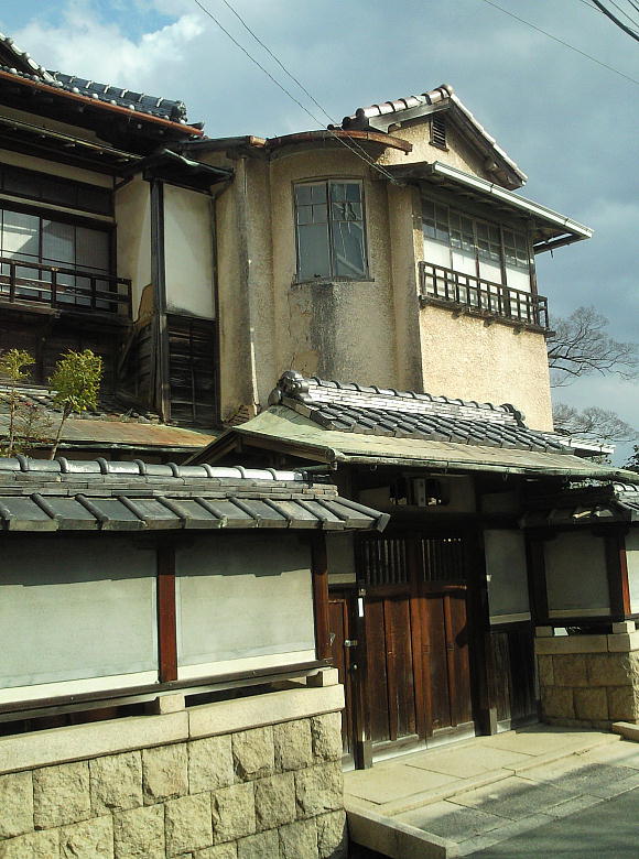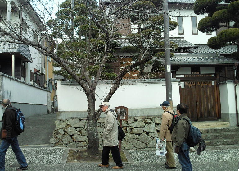 上左の黒塀の建物はヒガシマル醤油の倉庫でした。真ん中に見えているのが如来寺です。