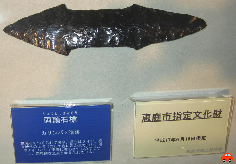 平成10年、市内黄金町95番地ほかに所在するカリンバ2遺跡第Y地点の発掘調査で出土した。縄文時代の黒曜石製石器としては大型