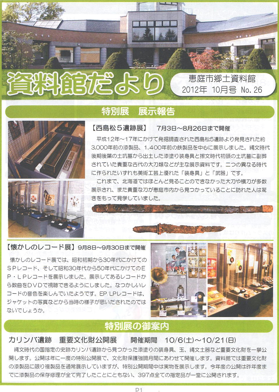 カリンバ遺跡の重要文化財、初めて一斉公開 恵庭市郷土資料館(2012年 10/6)=苫小牧民報