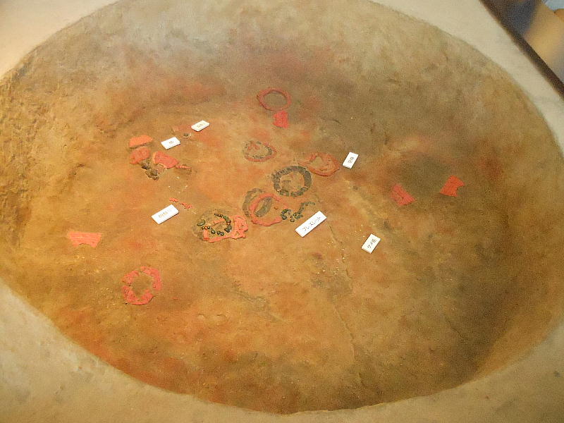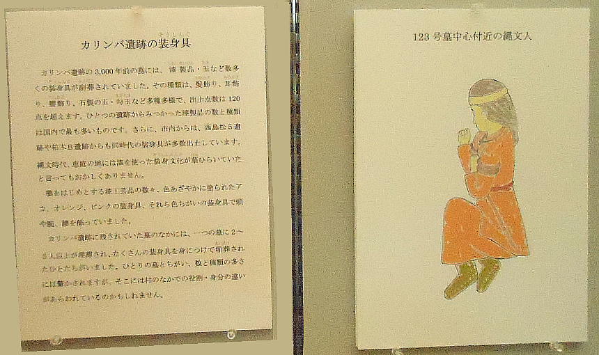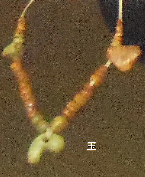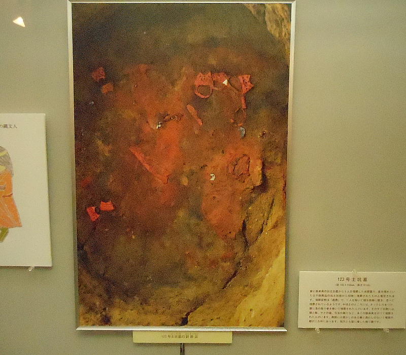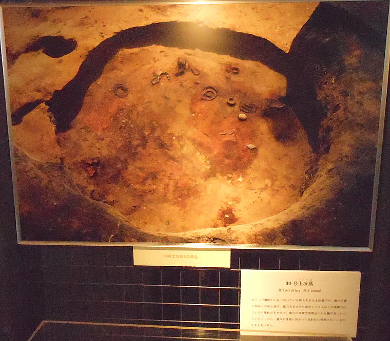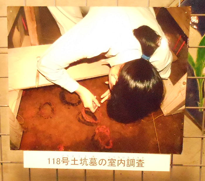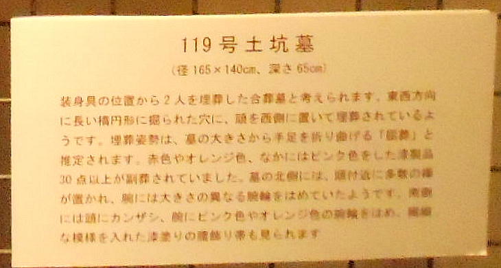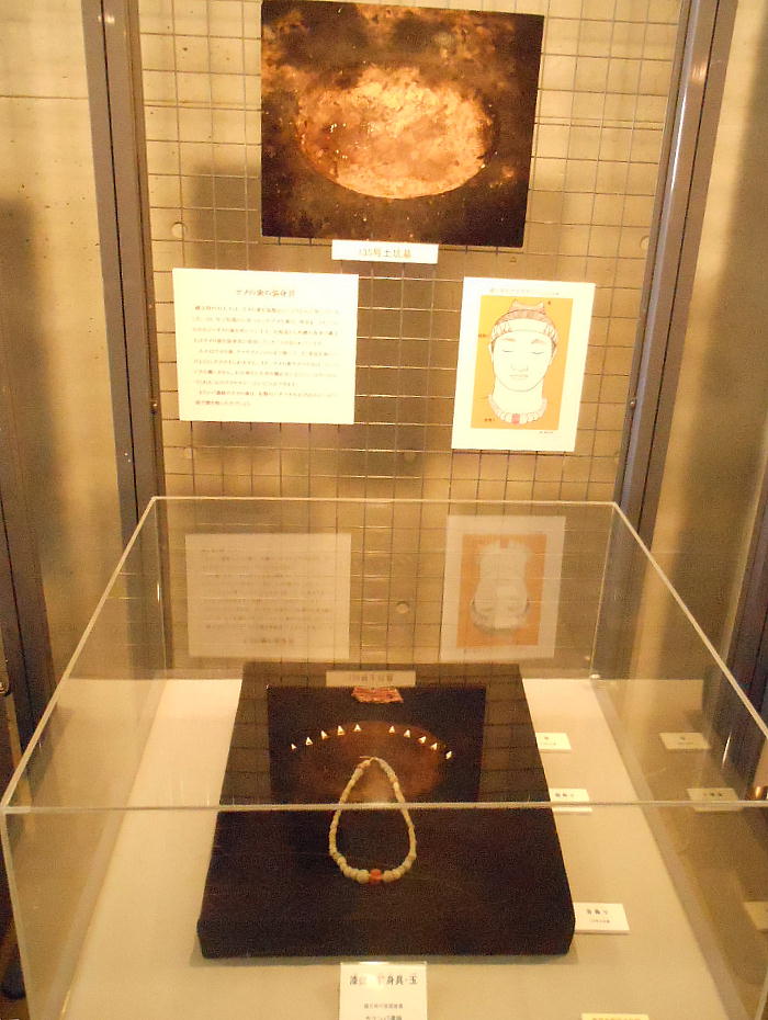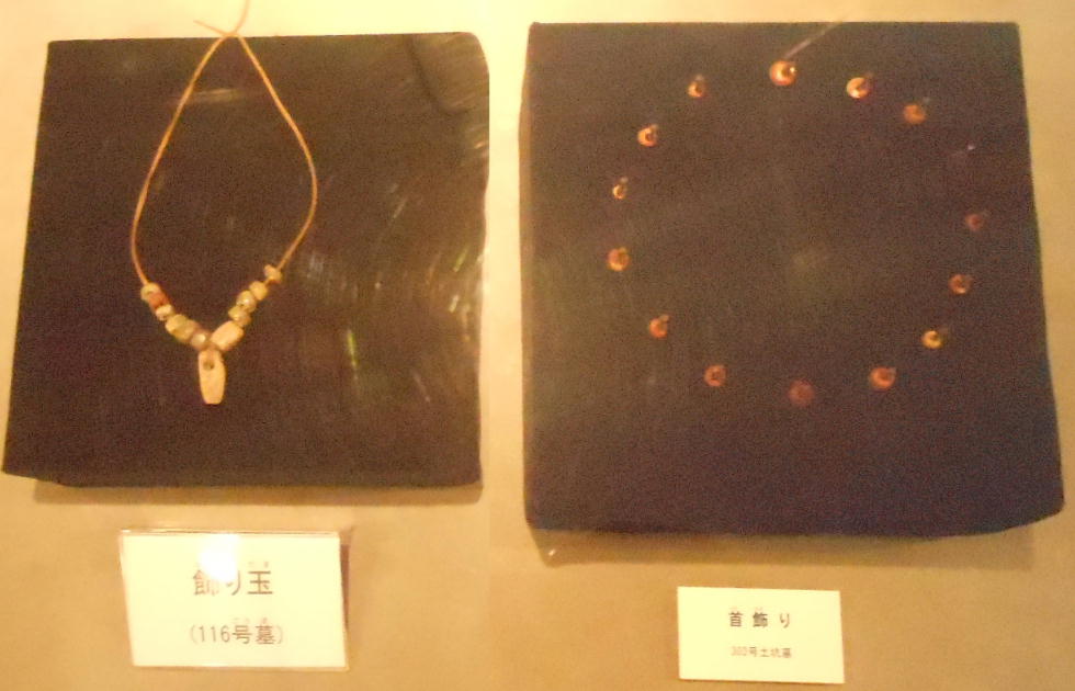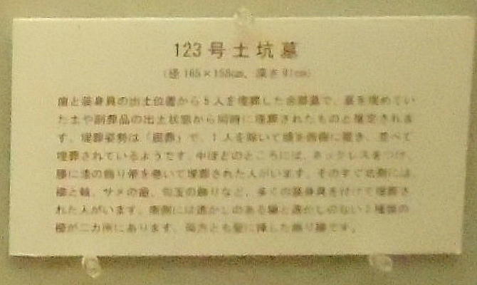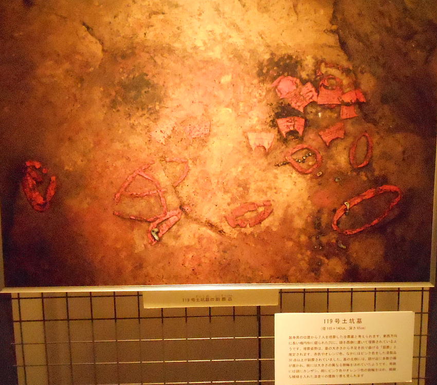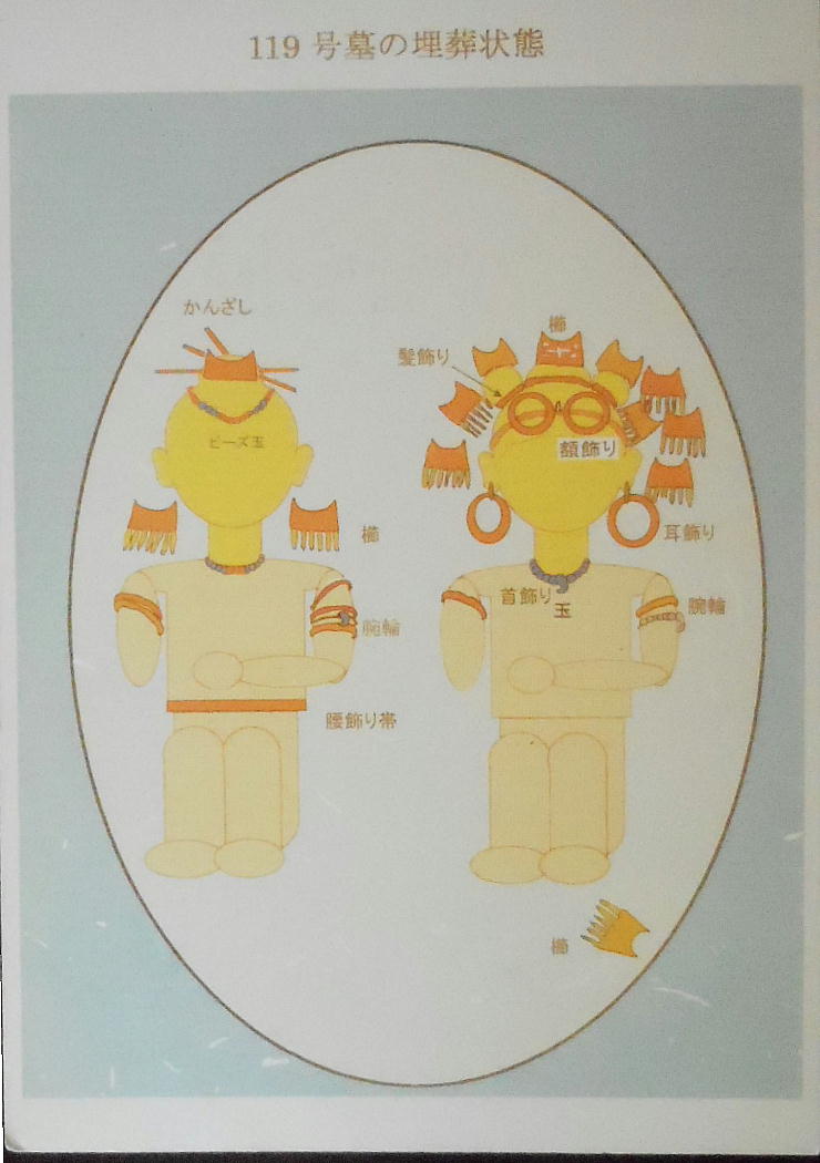 巻き、首に赤い土玉・滑石の玉のネックレスを着けていたと見られる。これらの大量の副葬品は、集落内の指導的立場の人か或いは“シャ