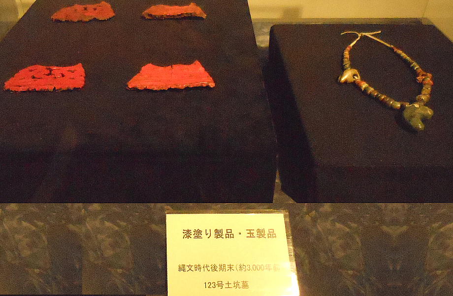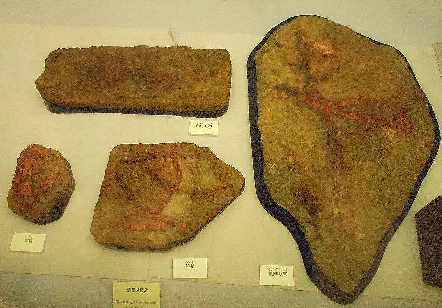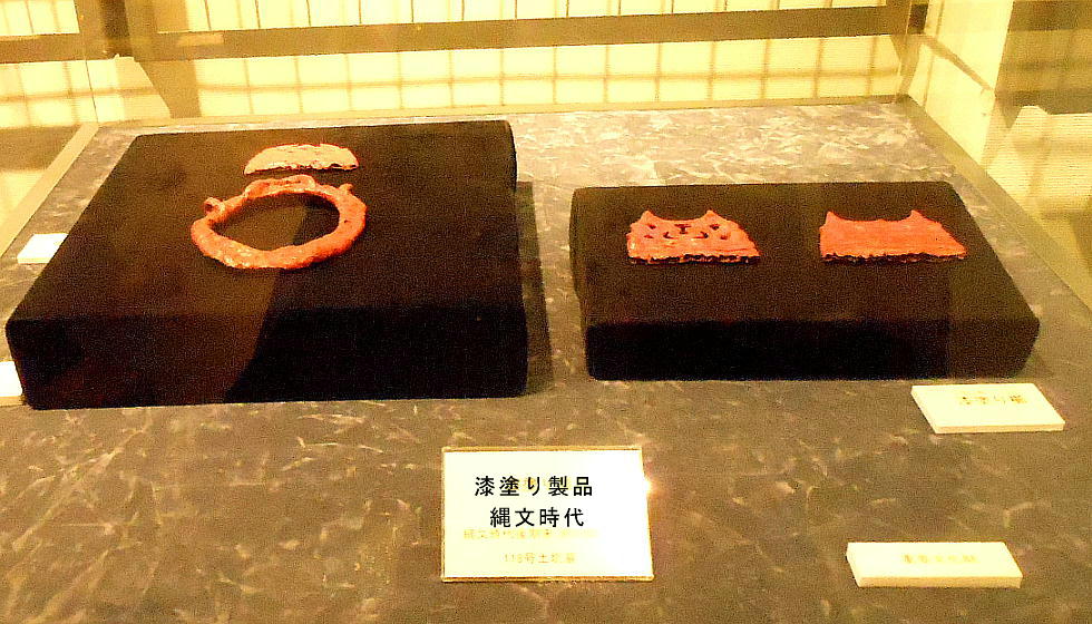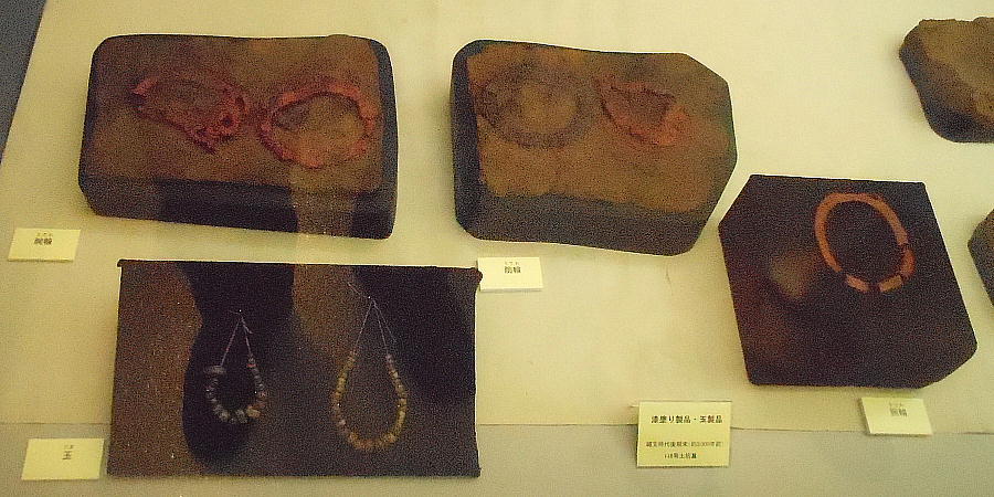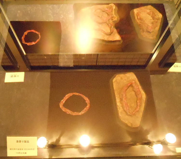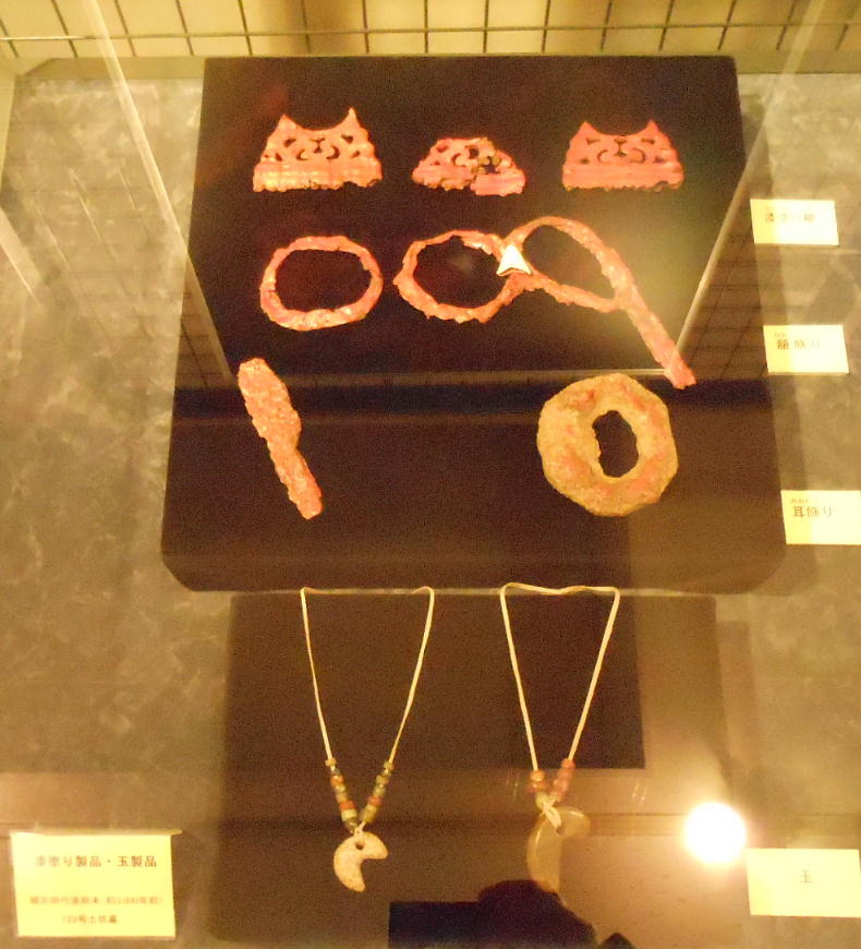 耳飾り、腰飾り帯、紐状製品など、これまで例を見ない漆製装身具類が出土している。
