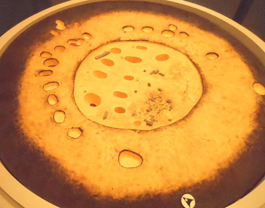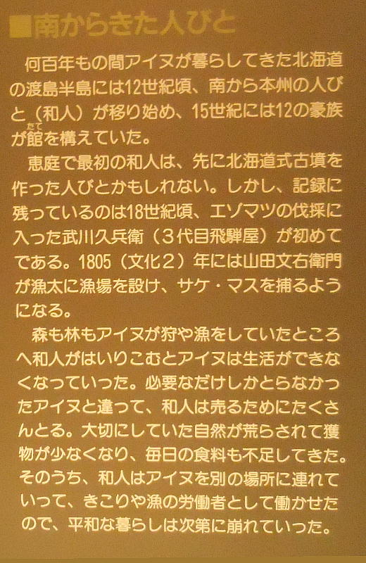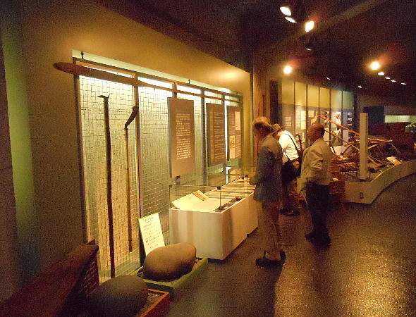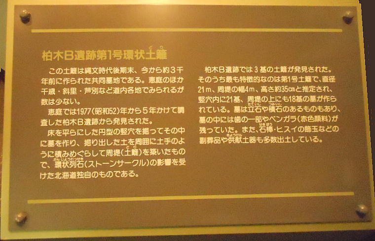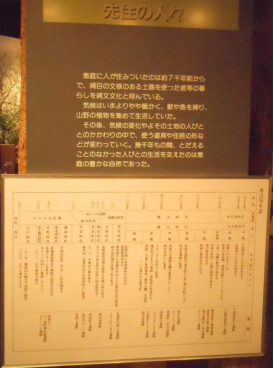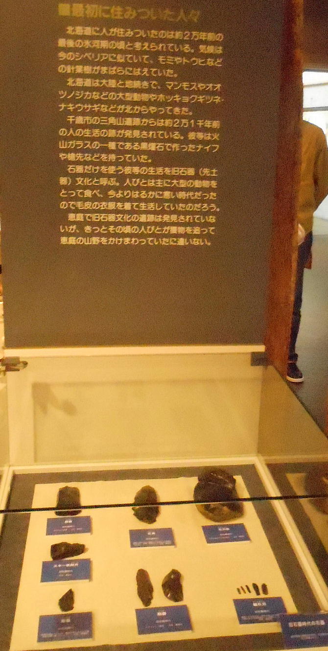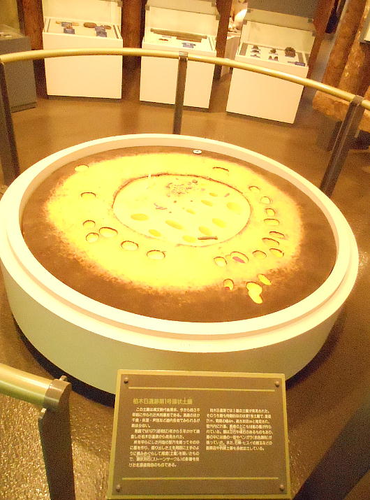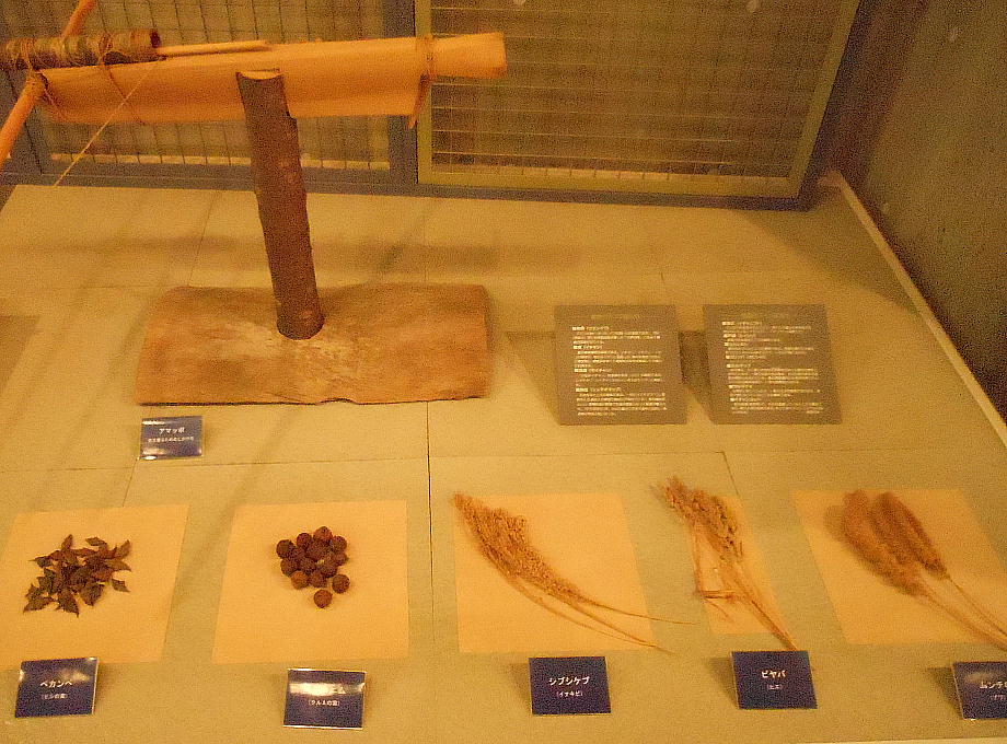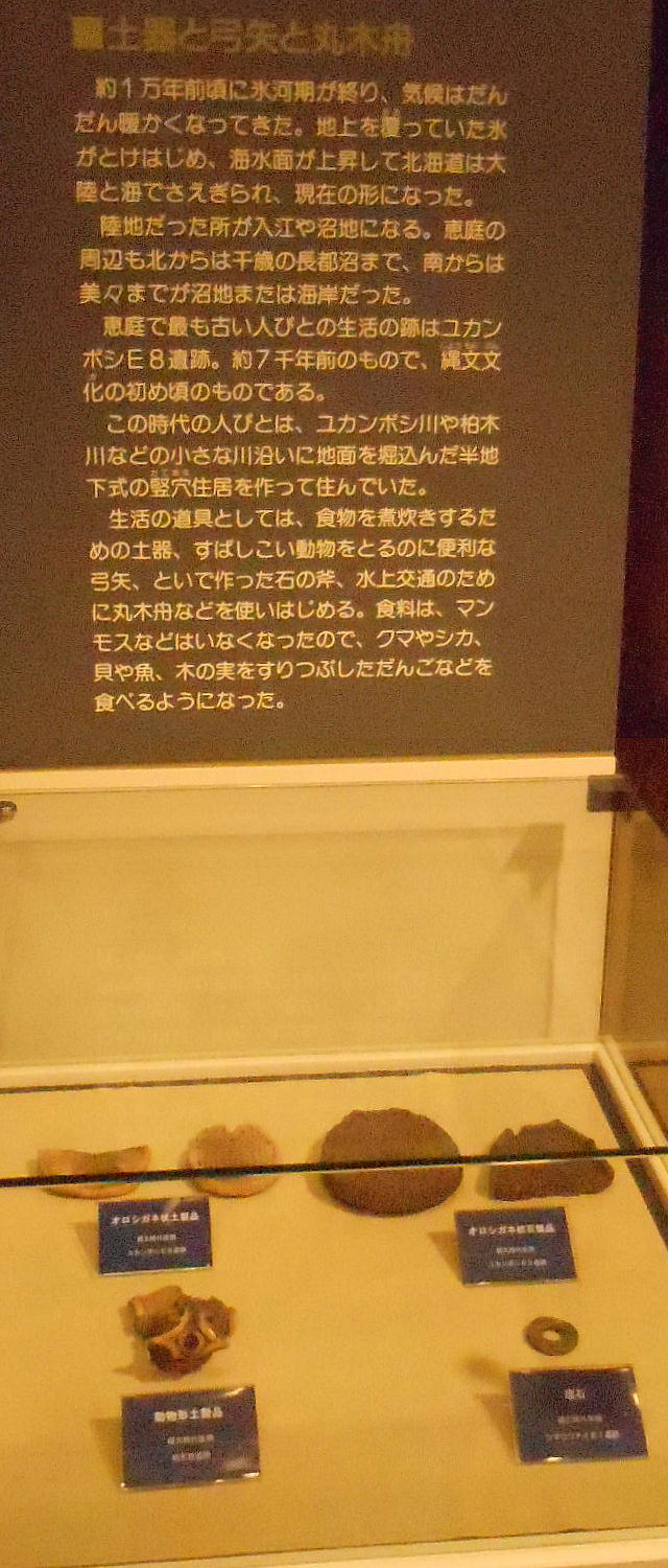 館内へ入るとすぐに、恵庭市の有名な遺跡「カリンバ遺跡」の復元遺構が目に入る。
