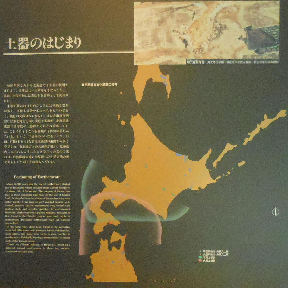 札幌のある石狩低地(石狩平野と勇払原野をあわせた土地の呼び方)で、南の尖底土器と、北の平底土器の両方が出土するということは、