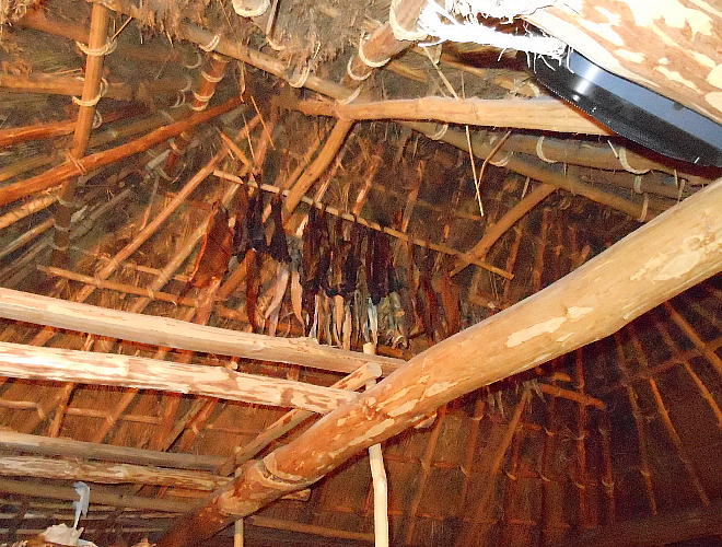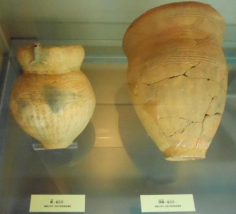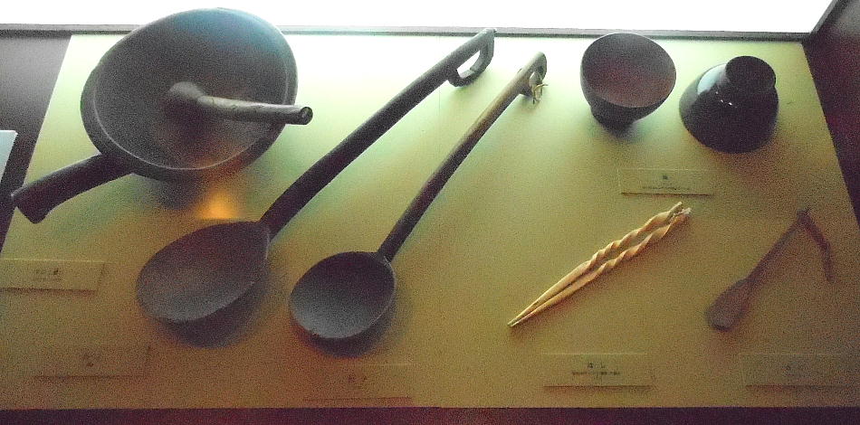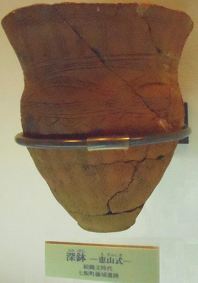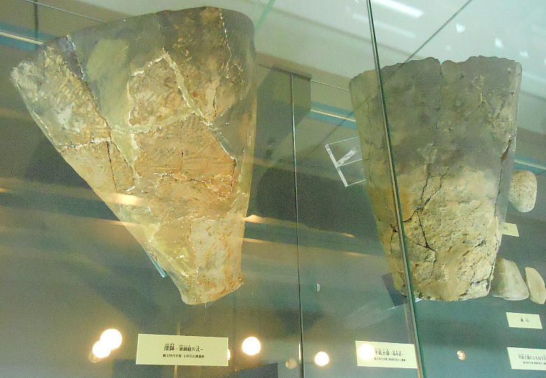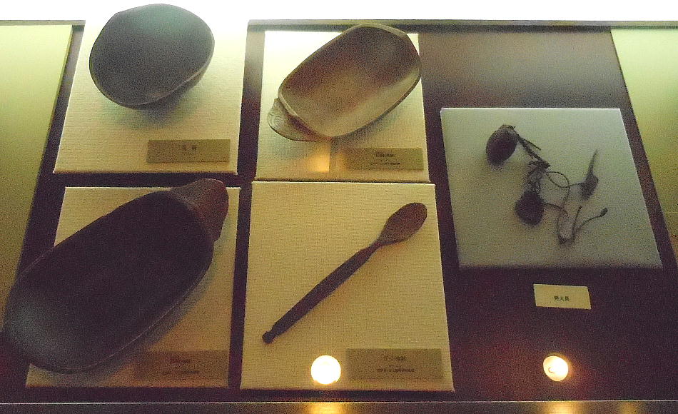 土器は鍋物をつくるのに便利で、たき火に突き刺すと安定する。底が平で置くと安定する平底(ひらぞこ)型土器は、大陸のもの。