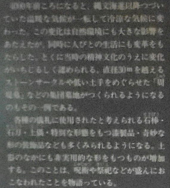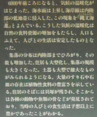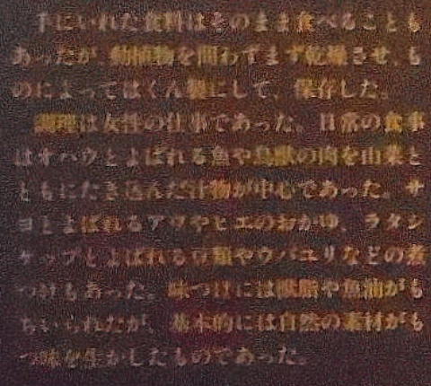長い間寒冷地だからと言われてきたが、最近そうではないという説も有力だ。魚介、肉、山菜、木の実などで「豊かな食文化」があった