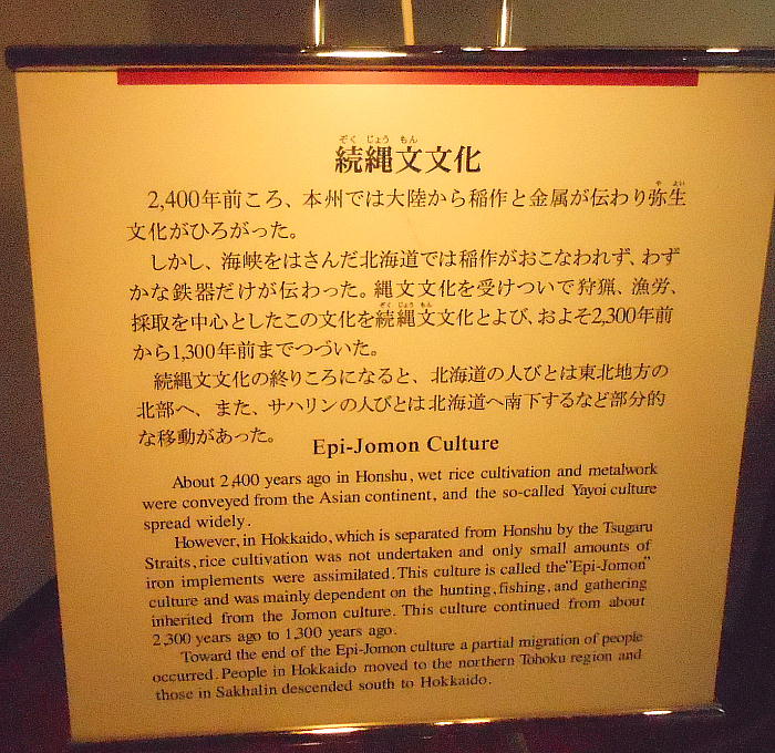末期、稲作の文化は、日本海側を青森県まで北上していた。その頃の気温は今よりも数度高かった。米が北海道にわたらなかったのは、