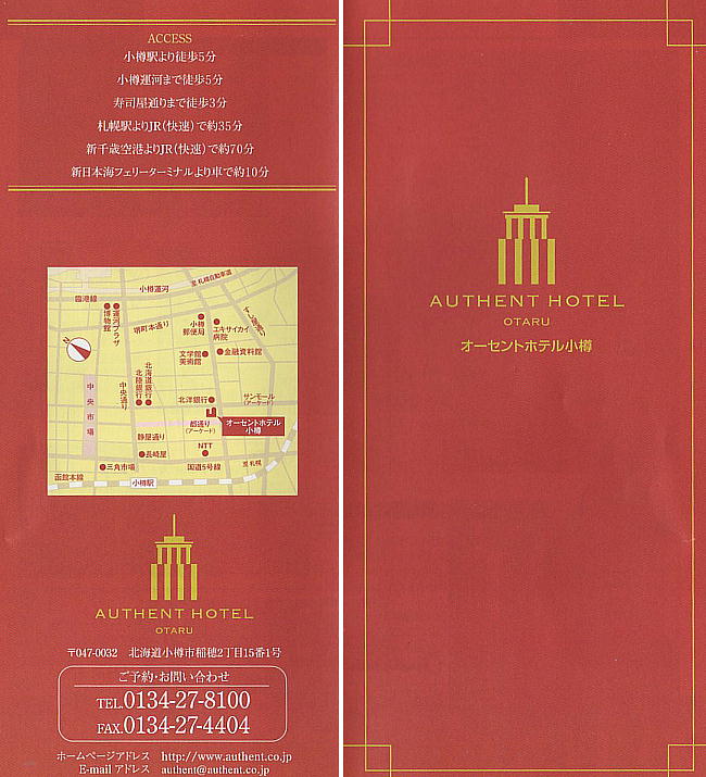 ホテル オーセント小樽。私のWifeは「あ、昔泊まったことある」と言っていた。