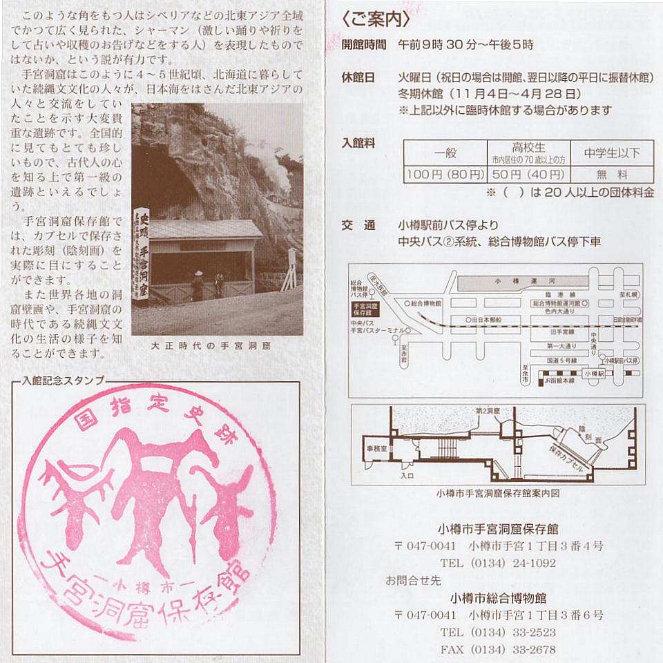 小樽市手宮洞窟保存館 〒 047-0041 小樽市手宮1丁目3番4号 電話 0134-24-1092
