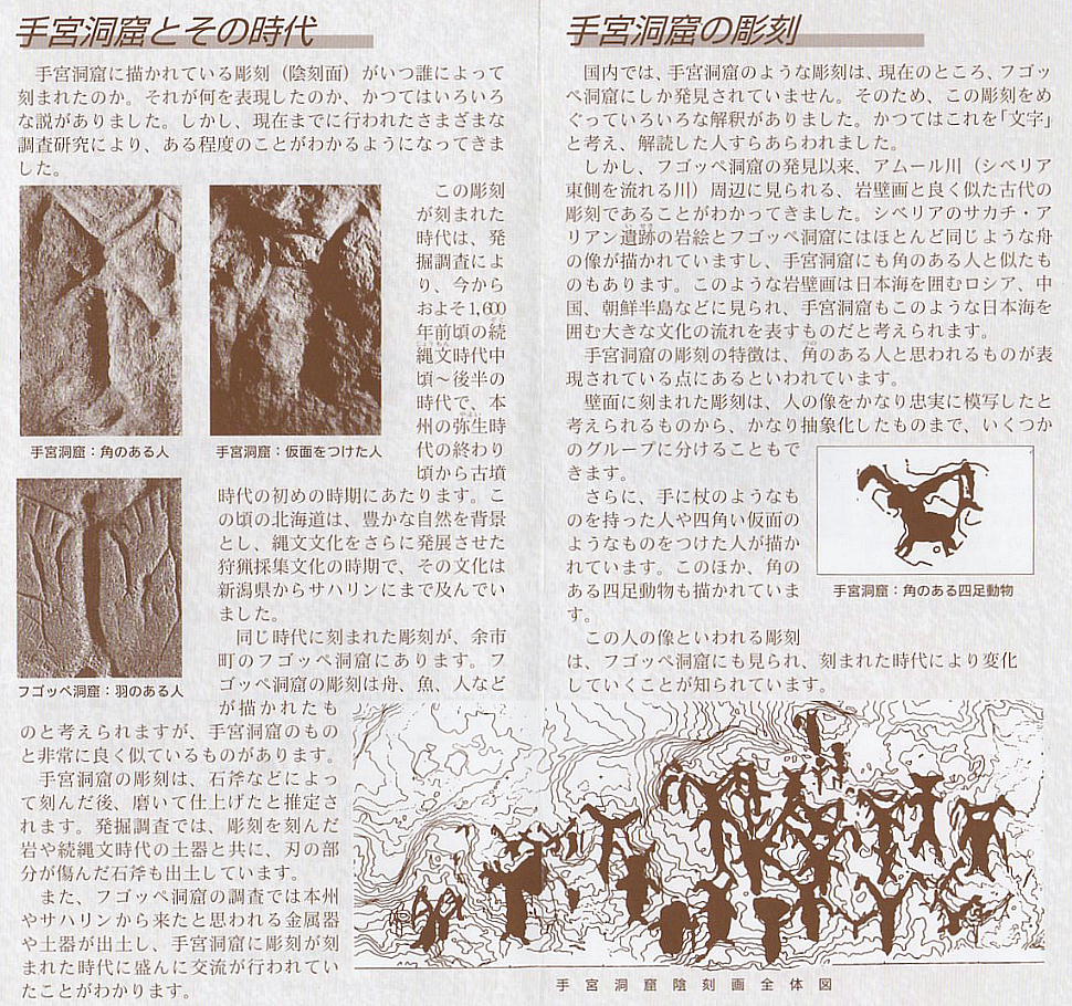 を囲む大きな文化の流れがあったものと推測できる。なおフゴッペ洞窟の壁画も、手宮洞窟と同じ時期に彫刻されたものである事が確認