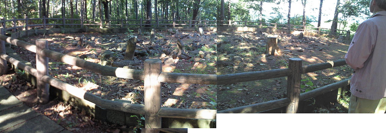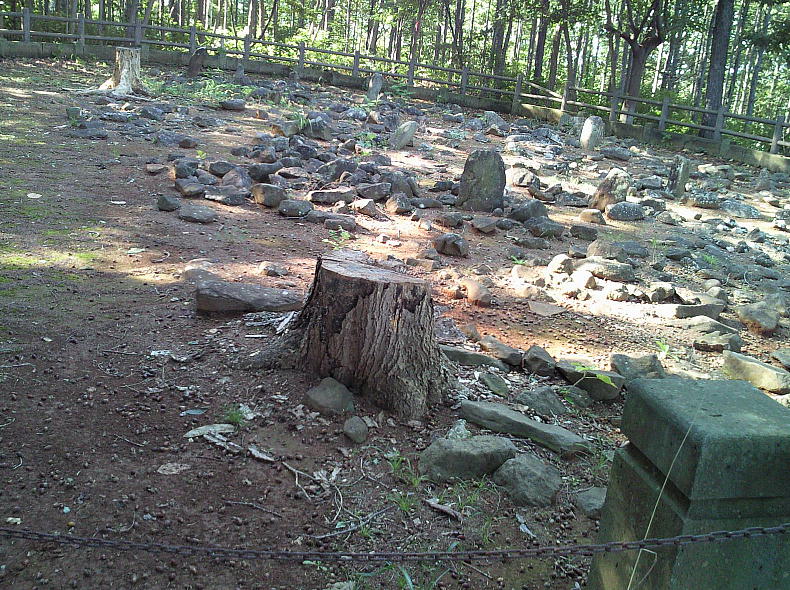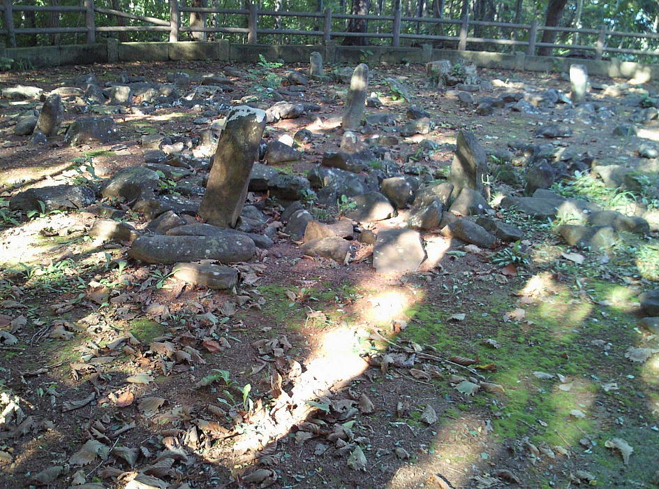 長経17メートル、短経12メートルの楕円状に、大小多数の石が散在している。発見された遺物は土器の破片だけで、縄文後期末のものと