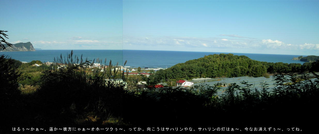 ここは山の頂上部である。対岸に余市のシリパ岬が見える。フゴッペ洞窟からも近く付近には「大谷地貝塚」などもある。
