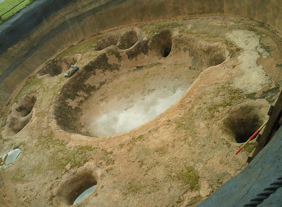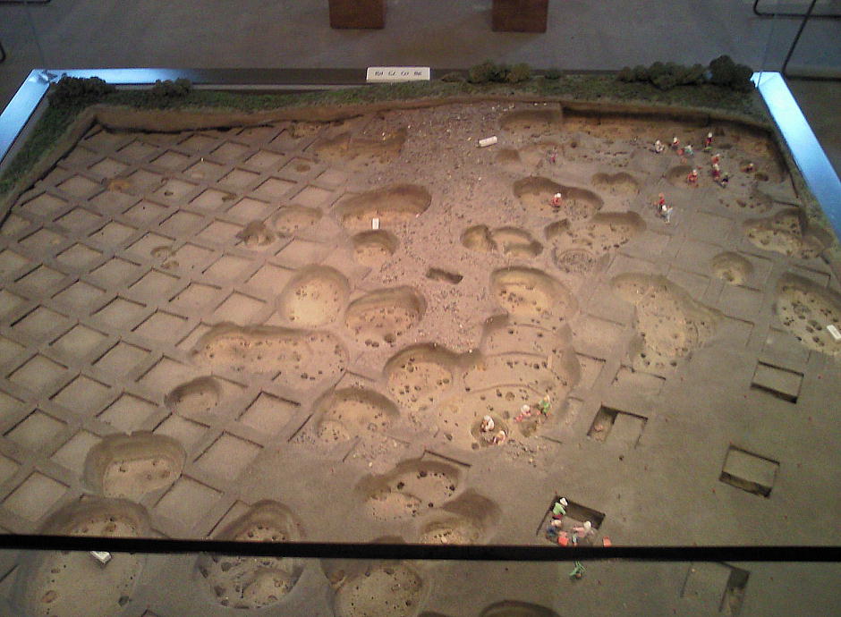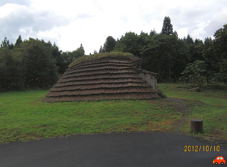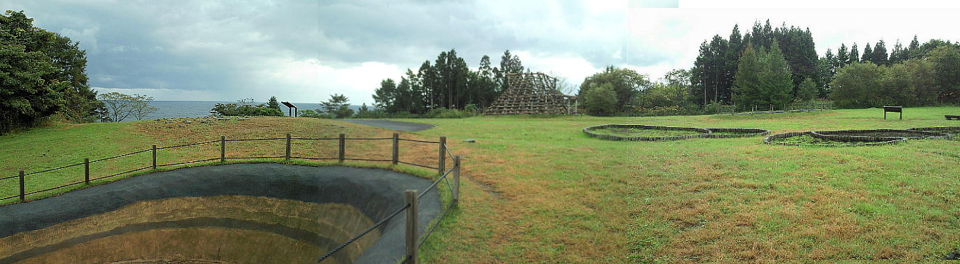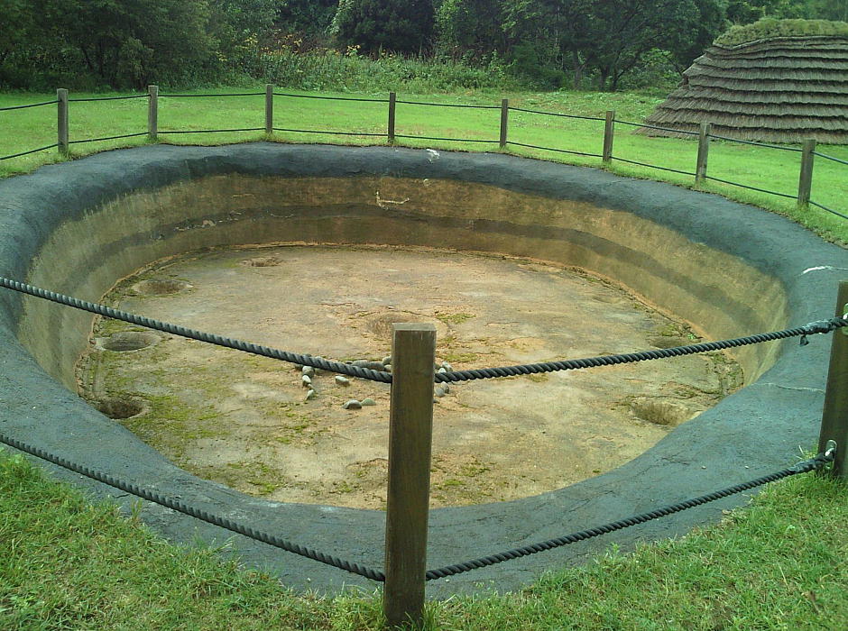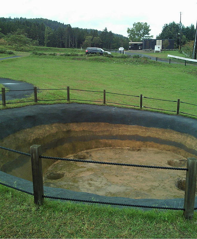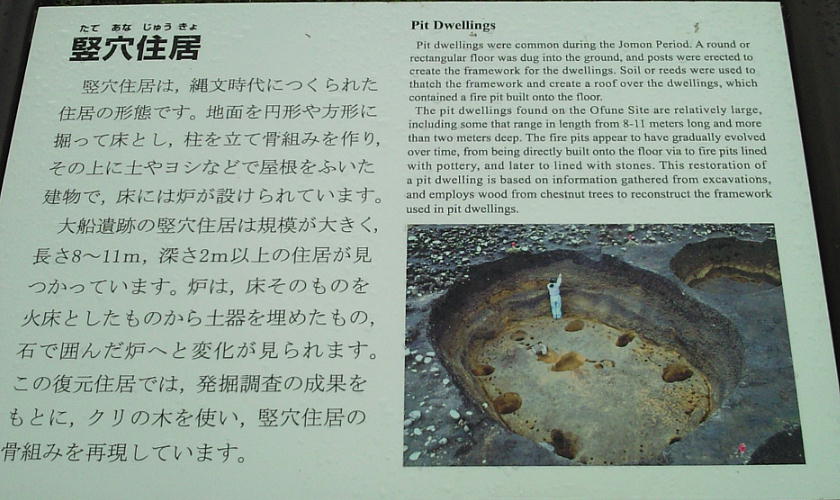 縄文時代の竪穴式住居跡は通常、深さ0.5m、長さ4〜5mというのが相場であるが、ここの住居跡には、深さ2.4m、長さ8〜11mという大型