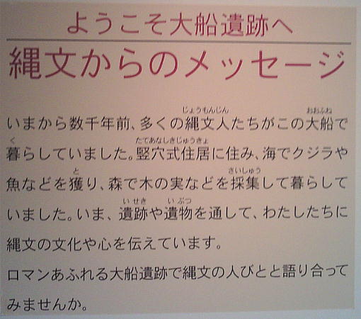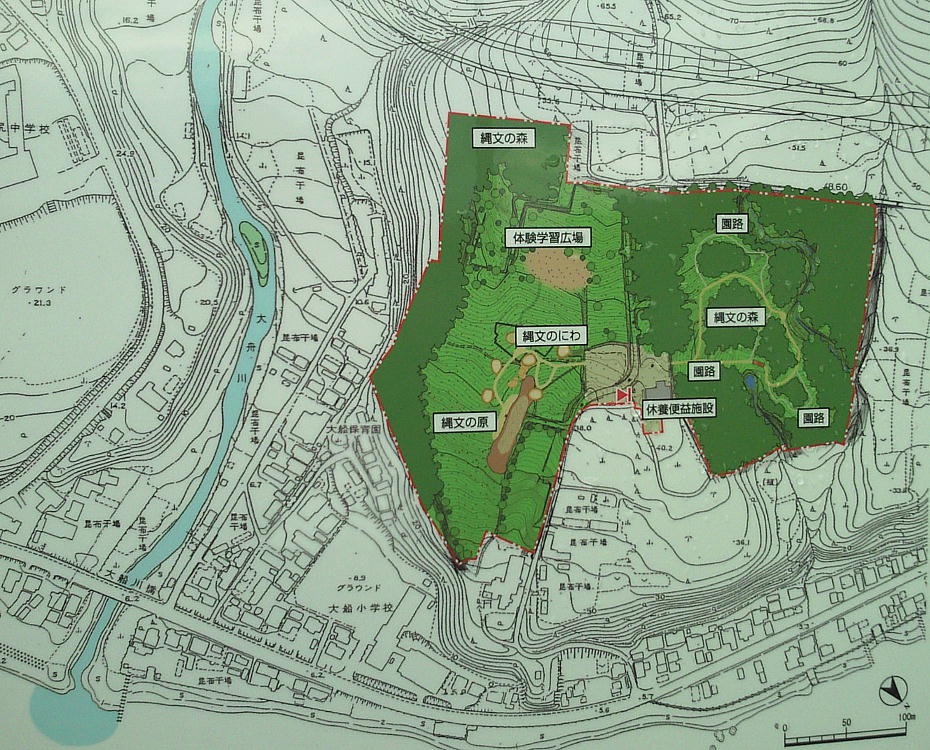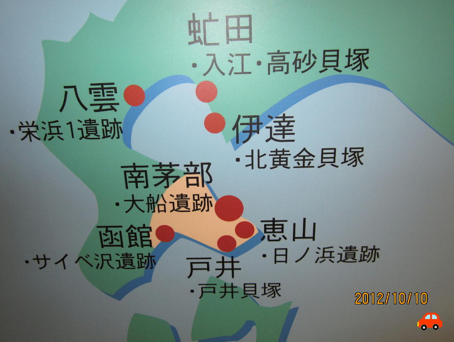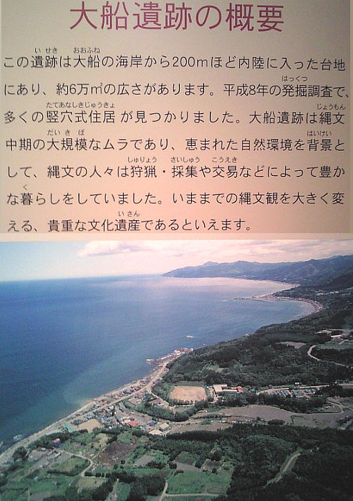 などが挙げられるが、これらはそっくり青森県三内丸山遺跡と共通する特徴である。つまり、縄文時代中期、津軽海峡を挟んでこの辺り