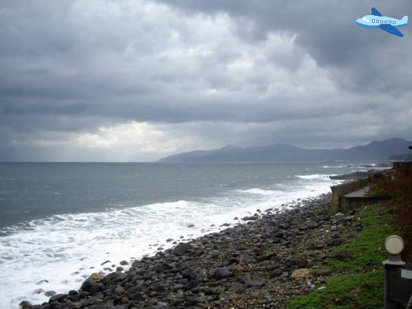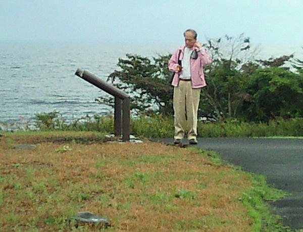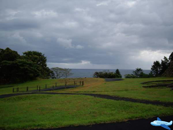 最初、台地の下に車を止めて車道を歩いたので海を背景に記念撮影したが、上まで上がれることが分かったので遺跡の側まで車を移動した。
