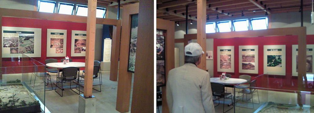 前回はここに出土物があった。縄文土器や石器が所狭しと置かれていたが火事になった(前回訪問レポートに記事がある)。