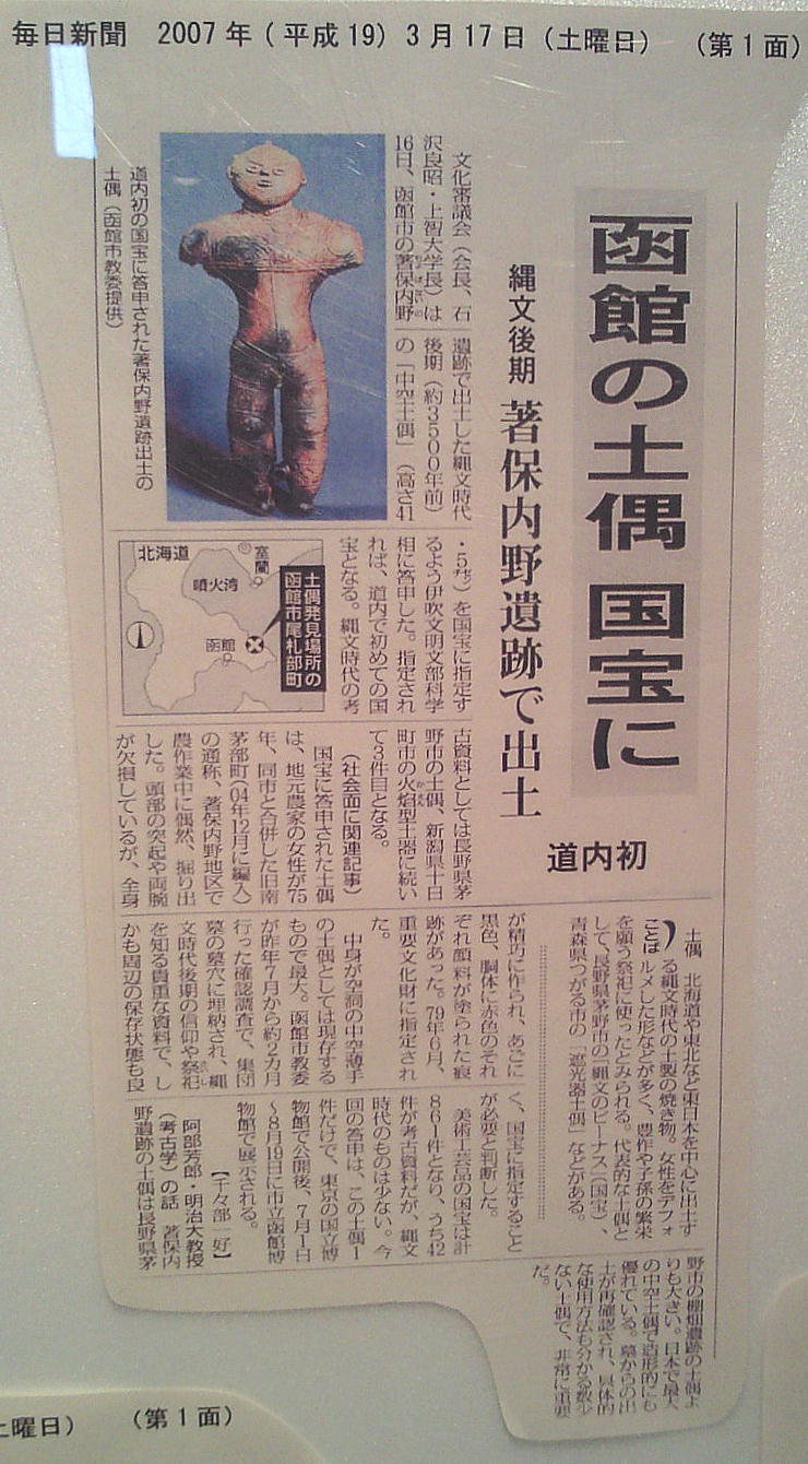 (ちょぼない)遺跡」出土の中空(ちゅうくう)土偶は、中空土偶としては我が国最大の大きさという事もあって、国から重要文化財に指