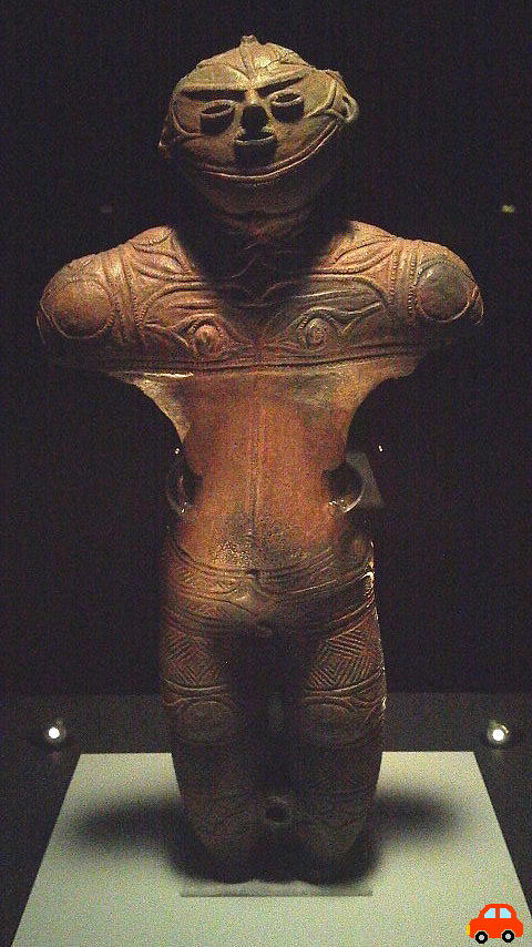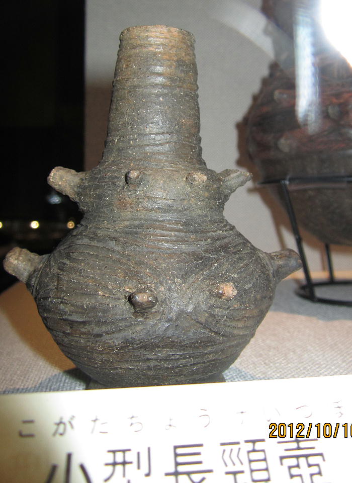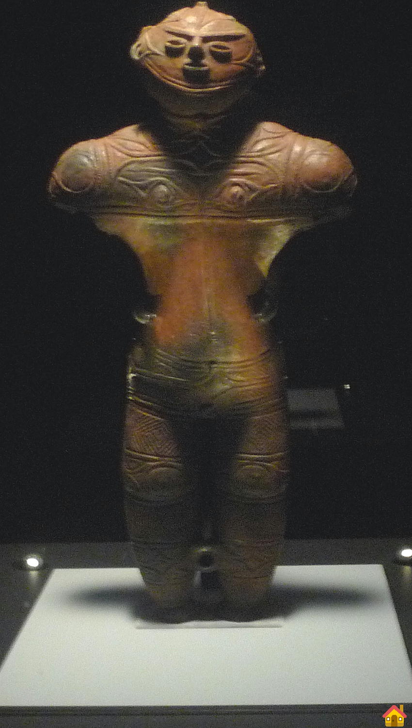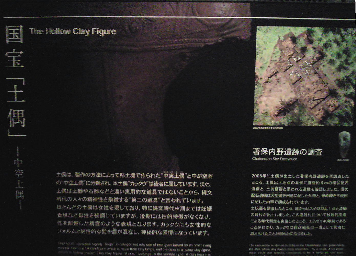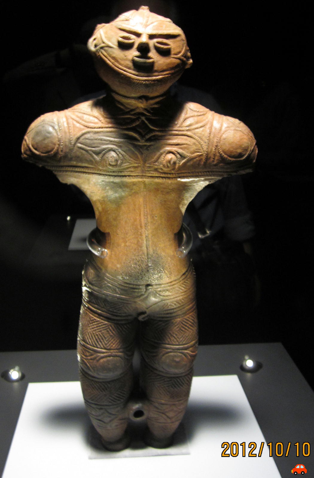 コマツさんが夢にまで見た中空土偶。照明が暗くて余り細部が見えなかった。この後信楽へ来た時は明るく綺麗に見えた。(182回例会)