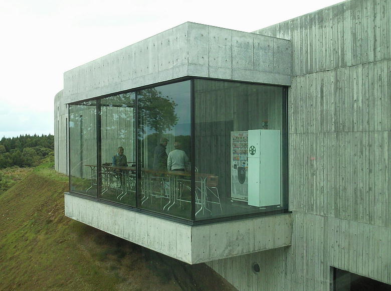 上の出っ張りが休憩コーナー。コーヒーなどの自動販売機が置いてある。