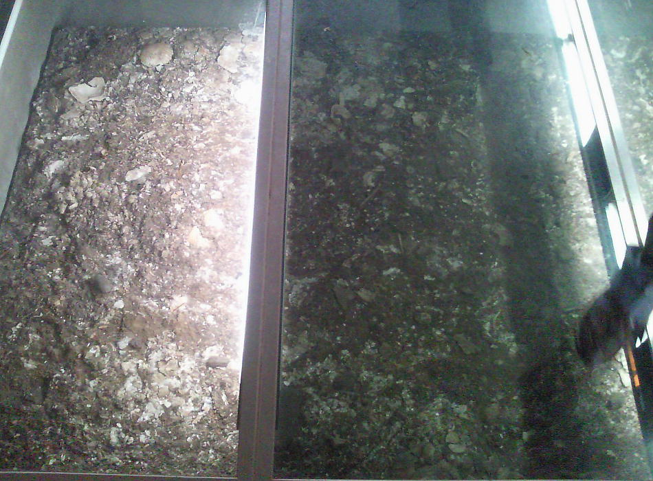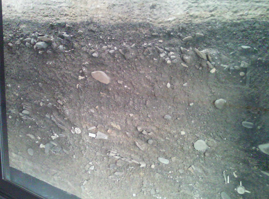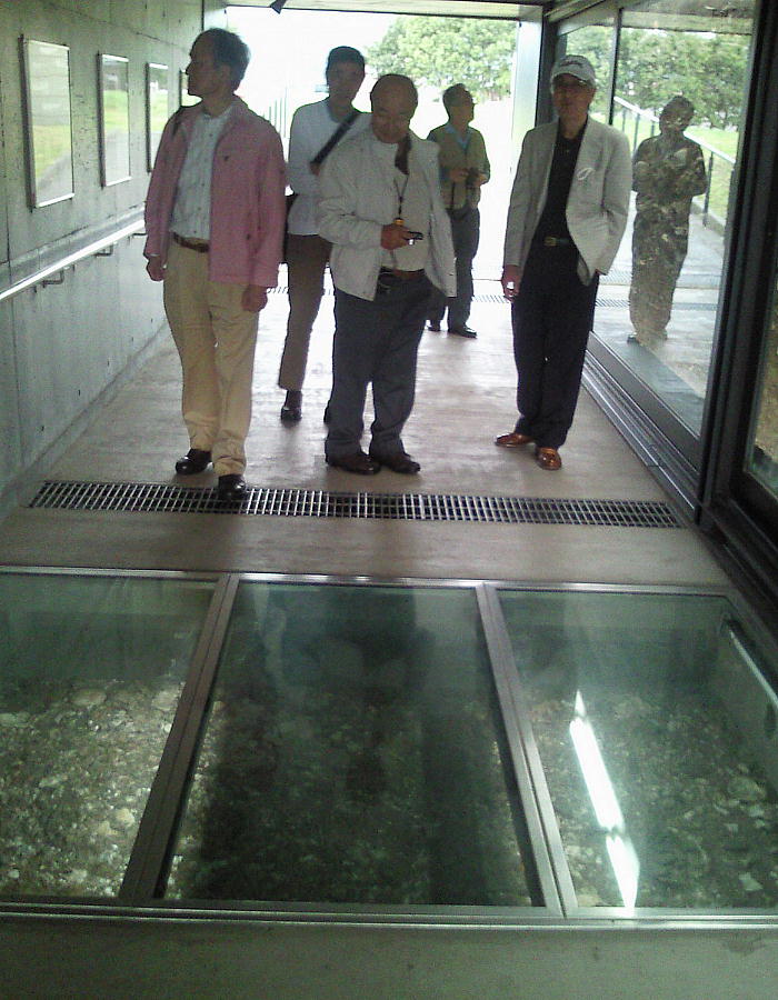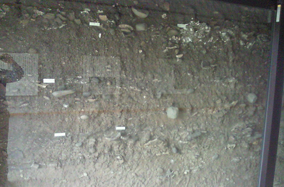トンネル状態で保管・展示されている貝塚の断面展示施設。