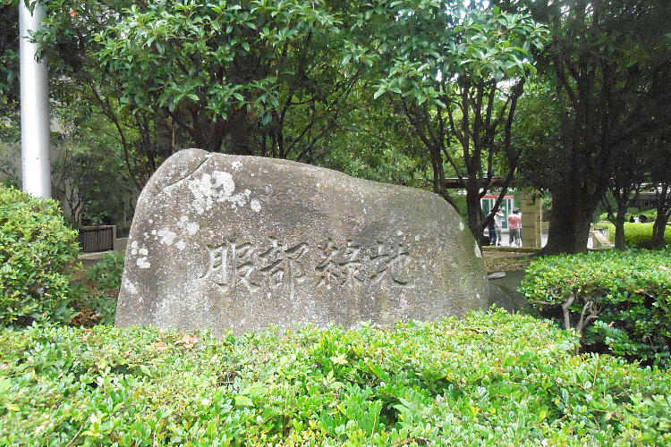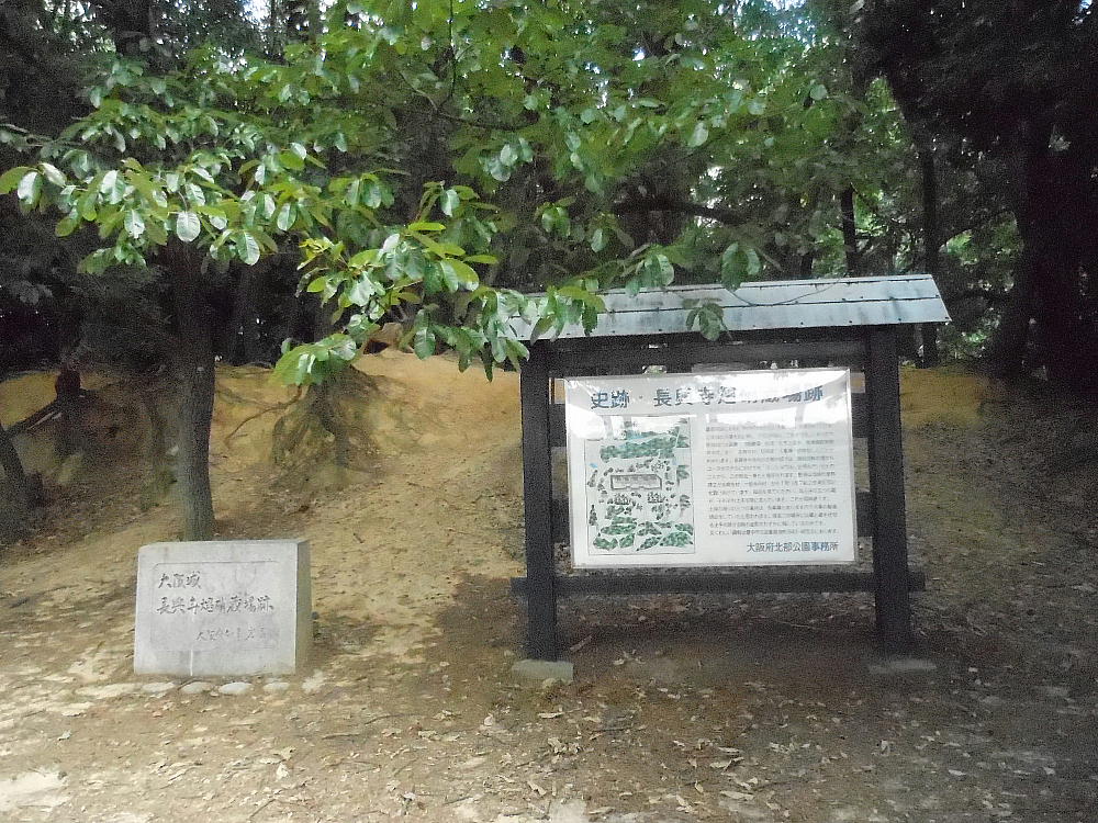 府営服部緑地の円形花壇の北東に「長興寺焔硝蔵場跡」の看板と碑がある。