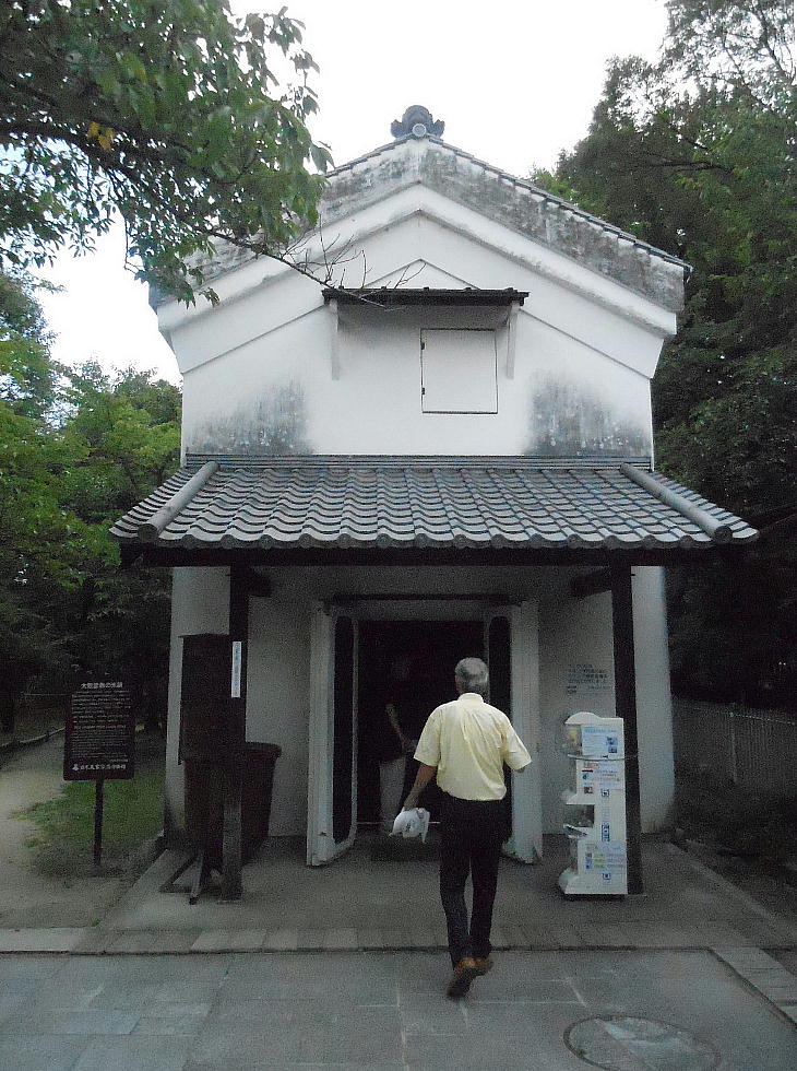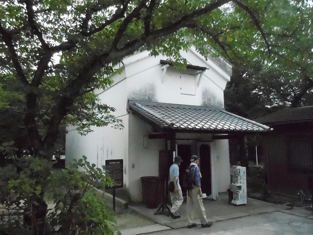 なんと! 大阪城の火薬庫の跡である。こんな所に造ったんか。街から遠く離したんやな。円形花壇の右手林のなか。