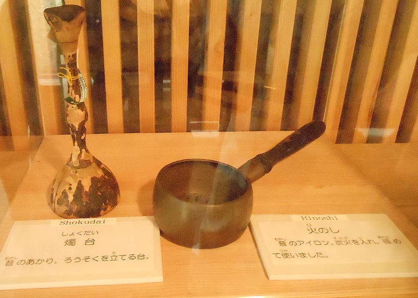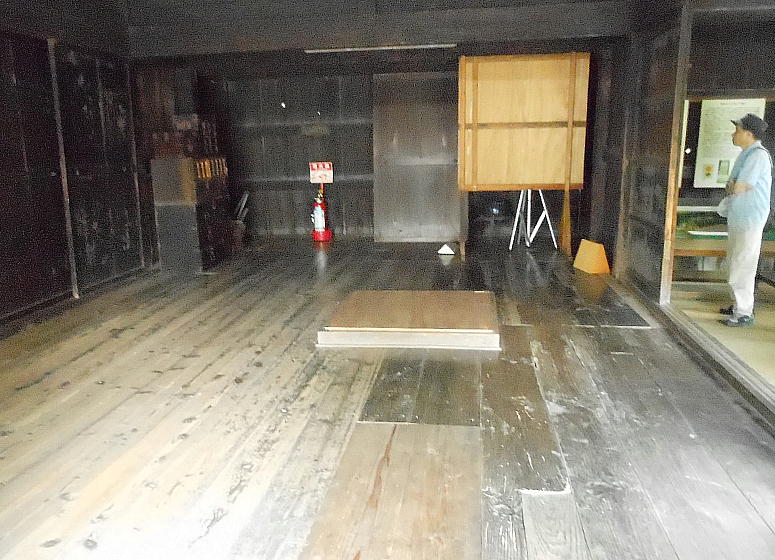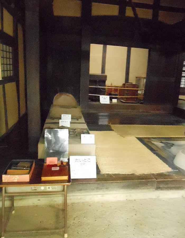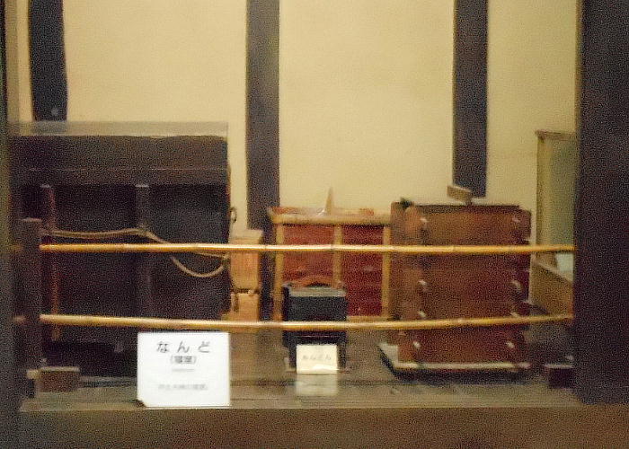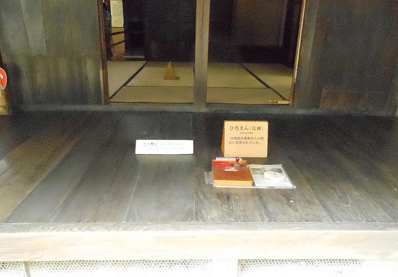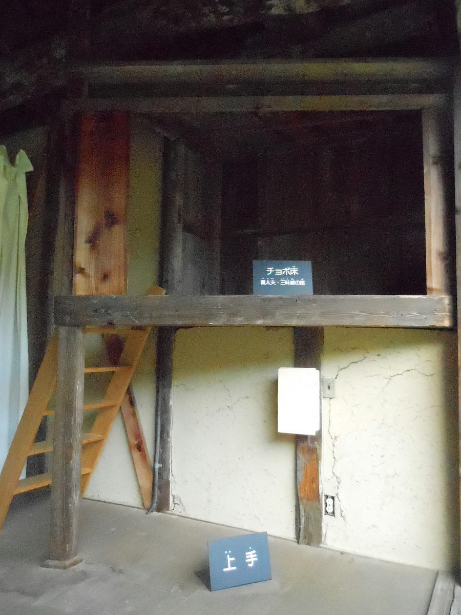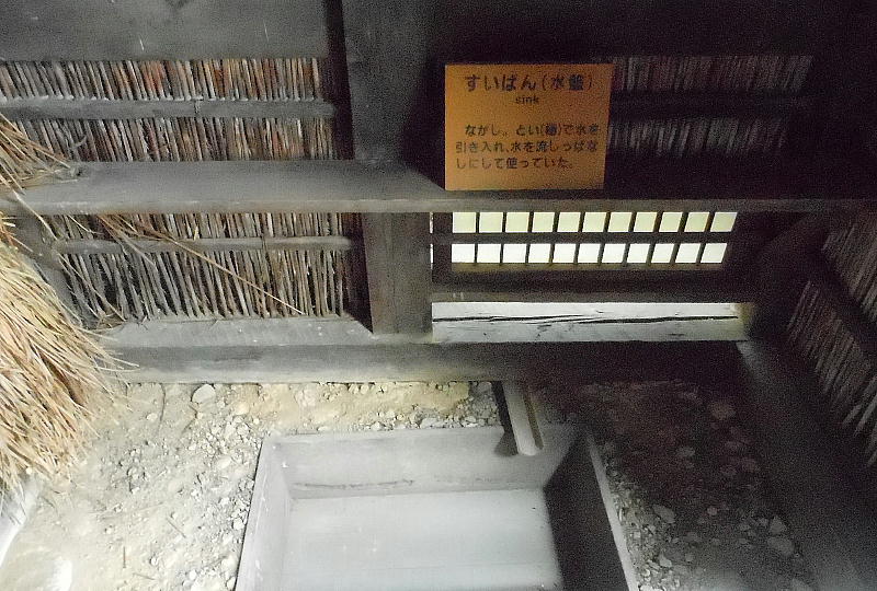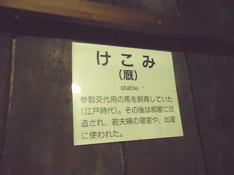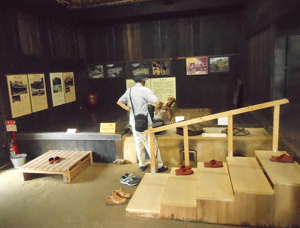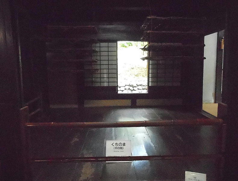 エンがあり、その外にホカエンが続く。背後は山腹に接しているため窓のない板壁となり、物入戸棚・神棚などが並べてある。