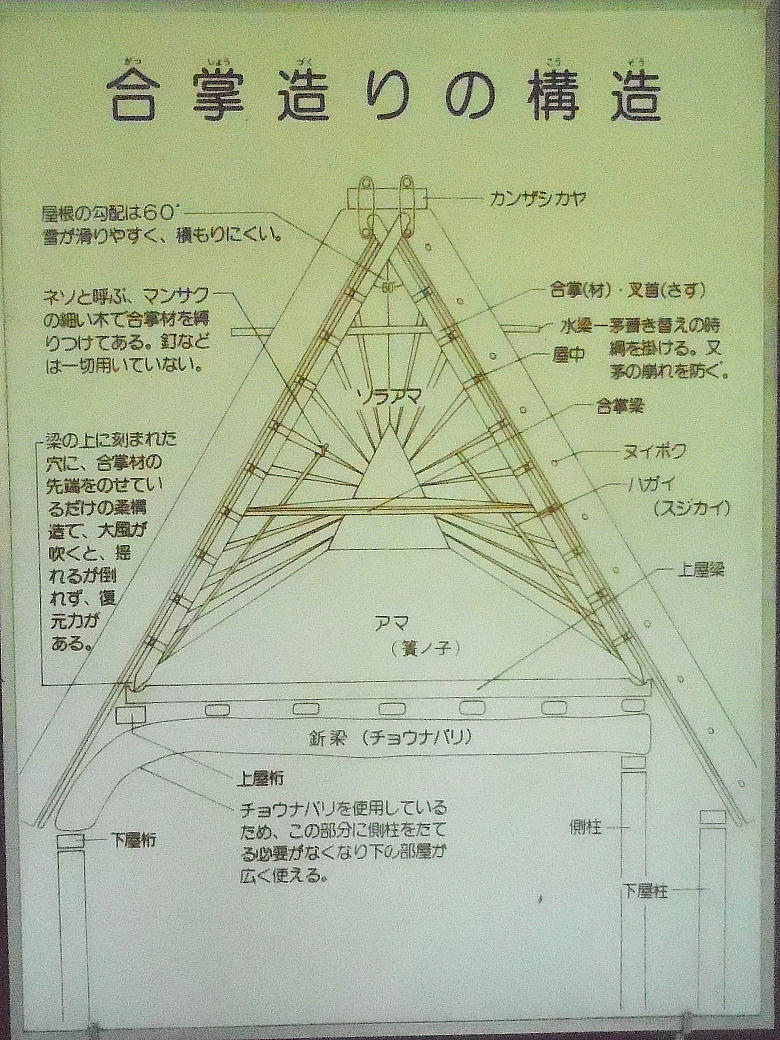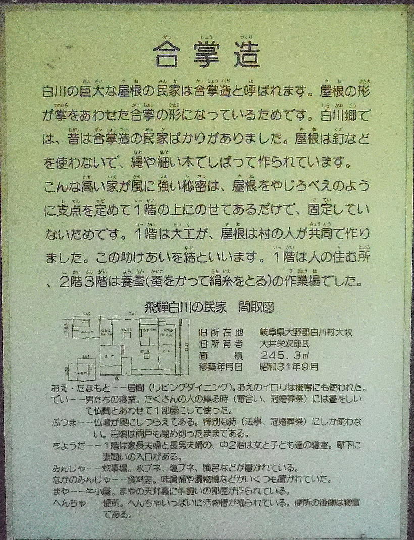 ていったと考えられている。なお、合掌造りが普及する以前の住居形式については、まだはっきりしていない。