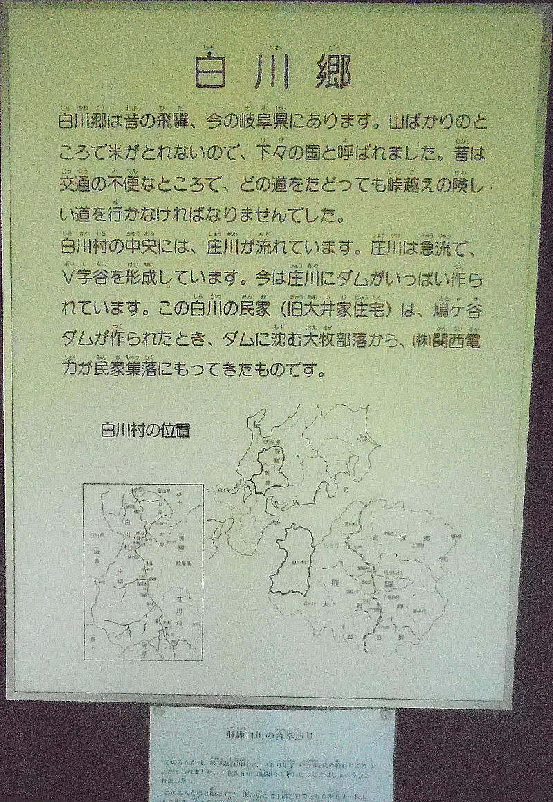 中流域である。白川郷は荘白川(しょうしらかわ)ともいい、現在は岐阜県白川村と高山市荘川町に分かれている。五箇山は富山県の