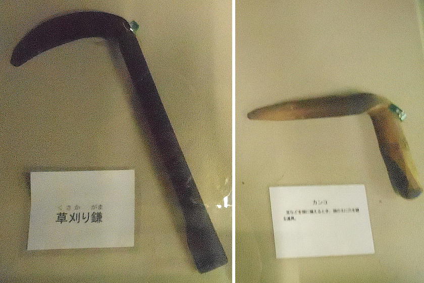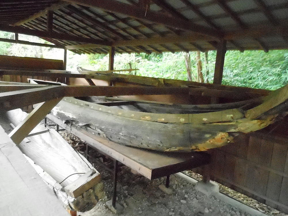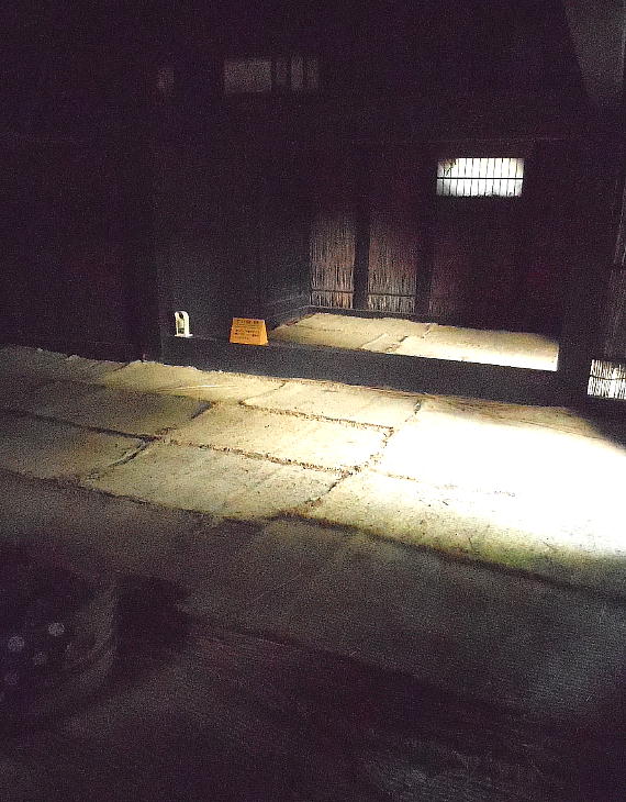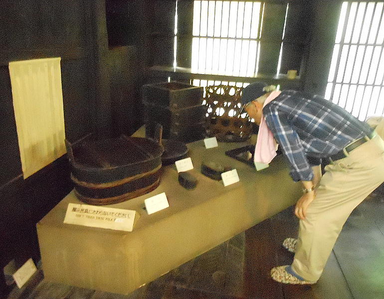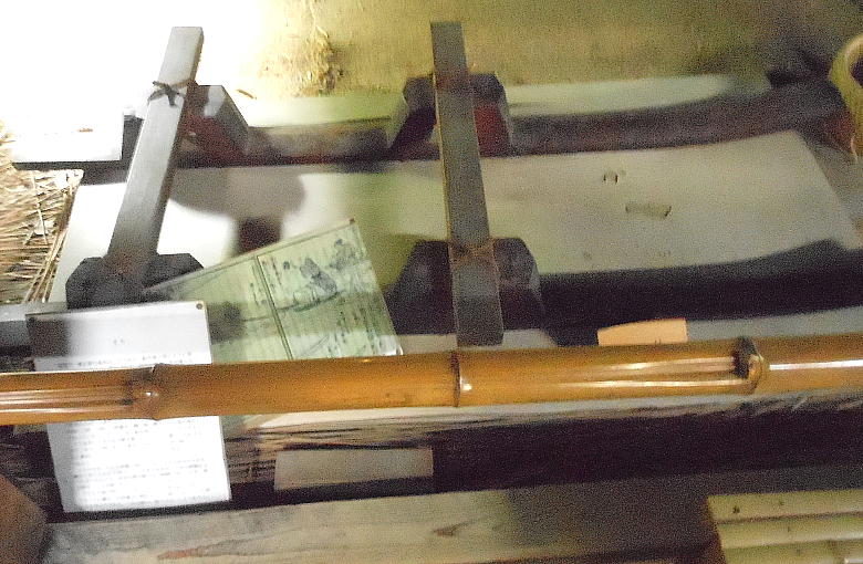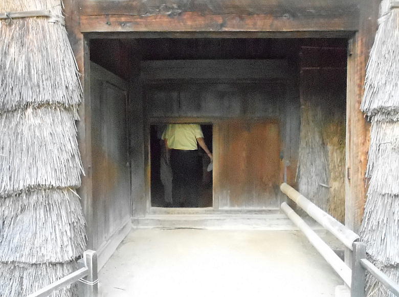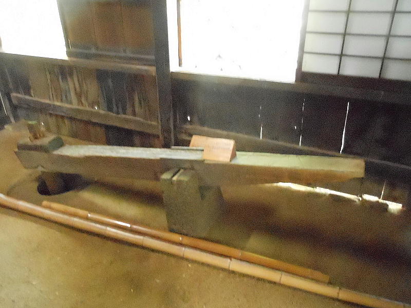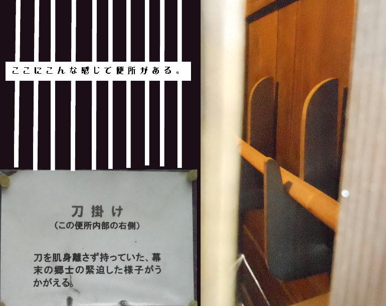 河内さんがのぞき込んでいる家屋は厠(便所)である。その中に刀置きが造ってある。