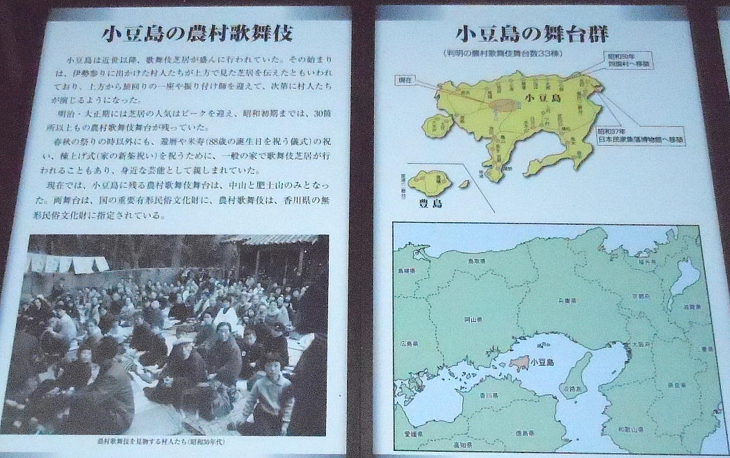 日前より忌み清められたデイで演じられる。コザは楽人、世話人たちの控室になり、ウチエン、ホカエンには村人が家格の順に座っ