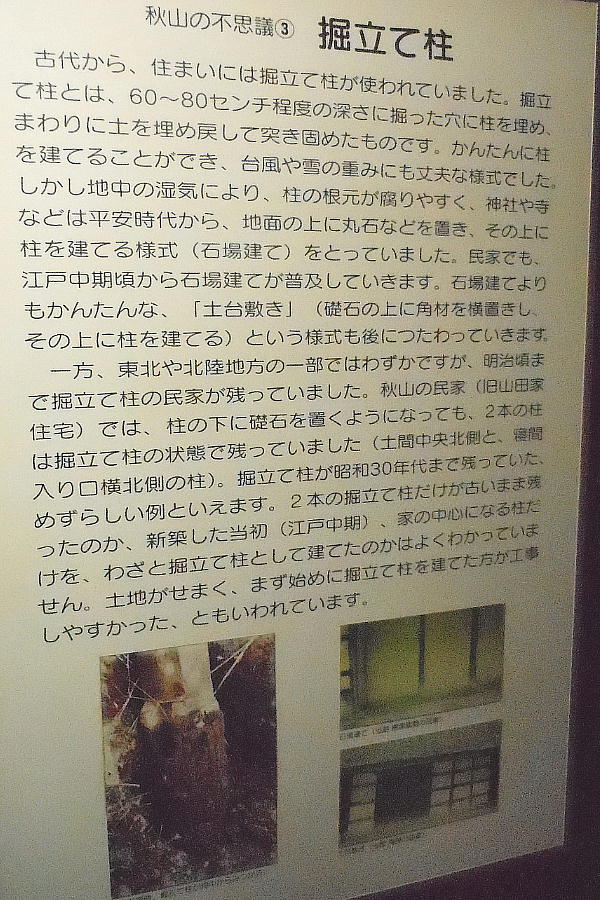 掘立柱などの古い形式を残す民家で、建築年代は江戸時代中期にさかのぼる。