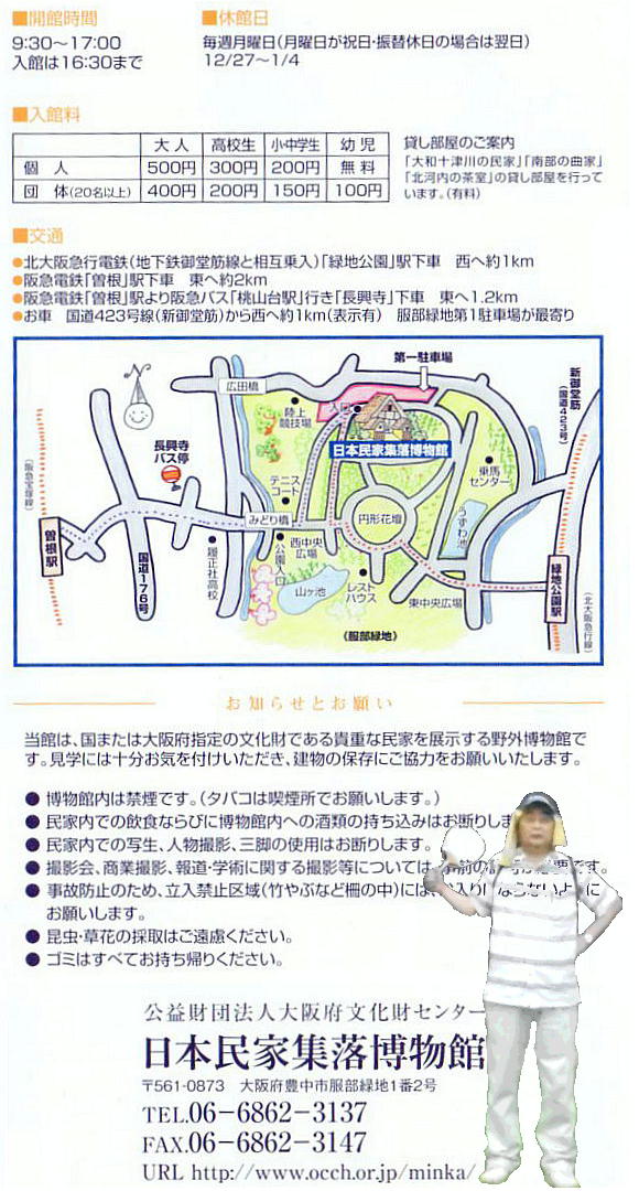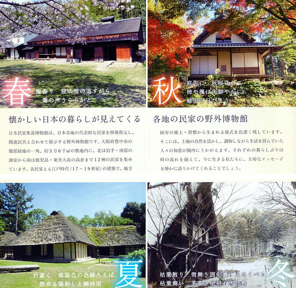 岩手から奄美大島までの民家11棟を服部緑地内に移設し、日本最初の野外博物館として昭和31年(1956年)に開館した。
