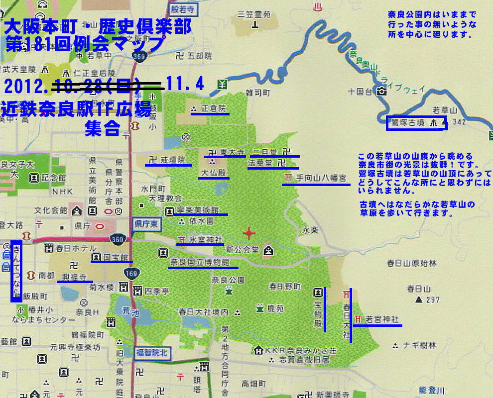 というものでした。我が歴史倶楽部の 181回例会で、奈良の若草山鶯塚古墳、シルクロード交流館、頭塔等を見学した後の反省