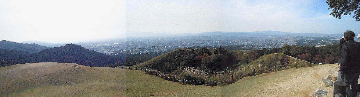 クリックすれば雄大な奈良盆地の光景が。入江泰吉もこの辺りから何枚も写している。
