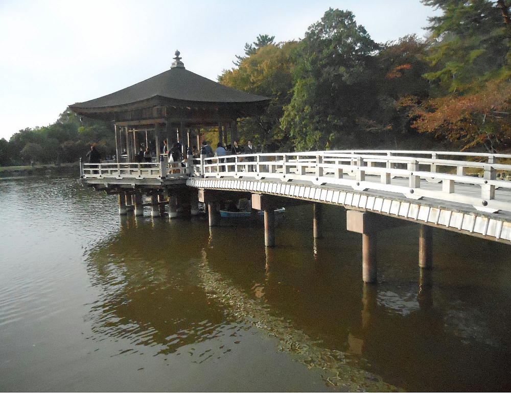 正倉院展の真っ最中で、写真ではよく見えないが池の後ろには大行列。