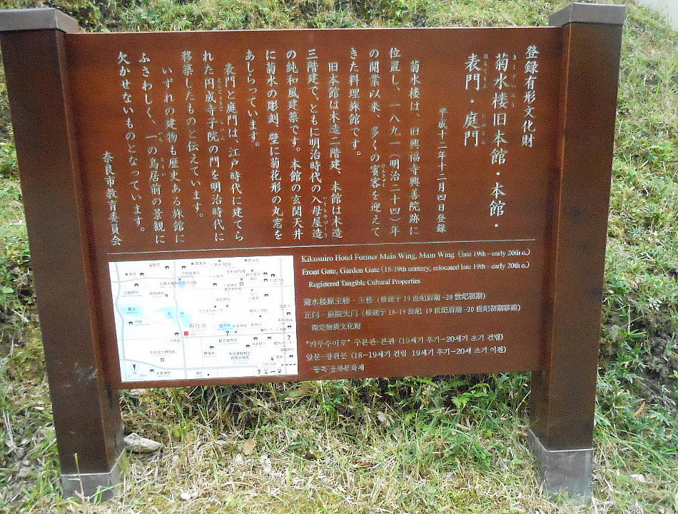 春日大社一の鳥居前に建つ古都・奈良を代表する料亭である。明治初年にホテル菊水として創業。明治維新まで郡山城下で旅籠