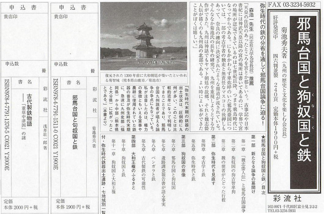 会いしました。菊池さんは「邪馬台国と狗奴国と鉄」という本を書かれた方で、他にも著作があり、次作は古事記に関する本だ