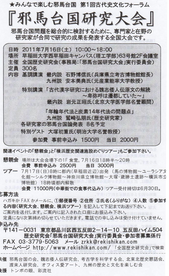 馬台国研究大会」が開催された時の実行委員長でもあります。この大会の主催は「全国歴史研究会」で、この会は全国に1万人